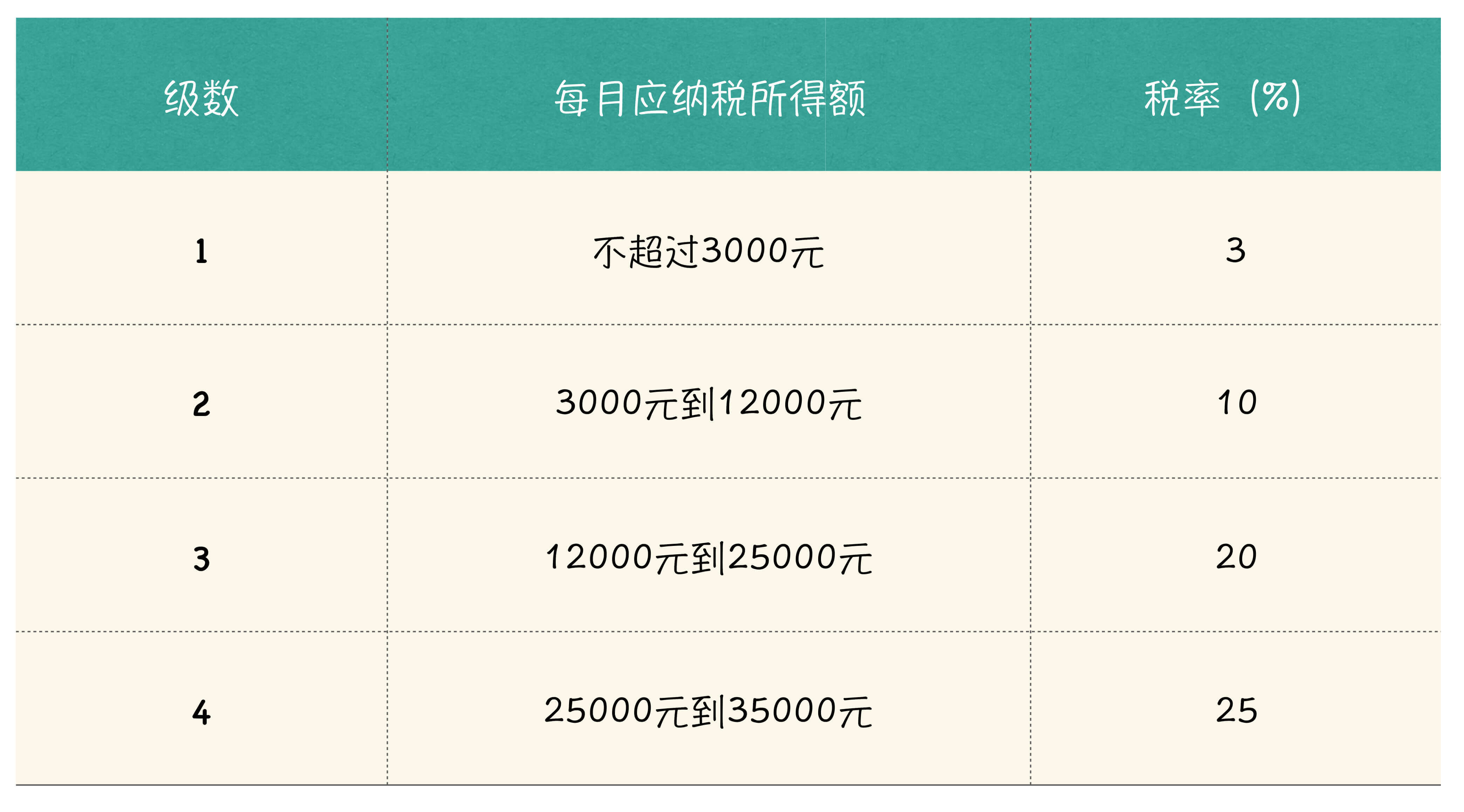 今天给你留的作业题呢,是一个我们大家普遍都比较关心的问题,与计算工资有关系。下表是“个人所得税缴纳税率表”的一部分:
