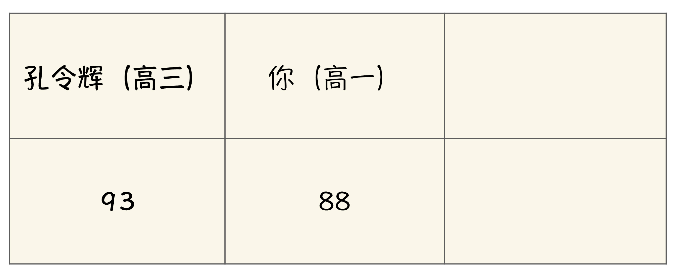 这个时候你欣喜若狂,因为再熬一年,如果新学弟战斗力没你高的话,你就能代表学校去参加国家赛了。很快一年又过去了,你终于熬到了高二,同时也迎来了一名新学弟张继科,战斗力 90。悲剧再次上演,你和张三一样,也失去了代表学校参赛的机会了,此时你的心情,是不是五味杂陈?