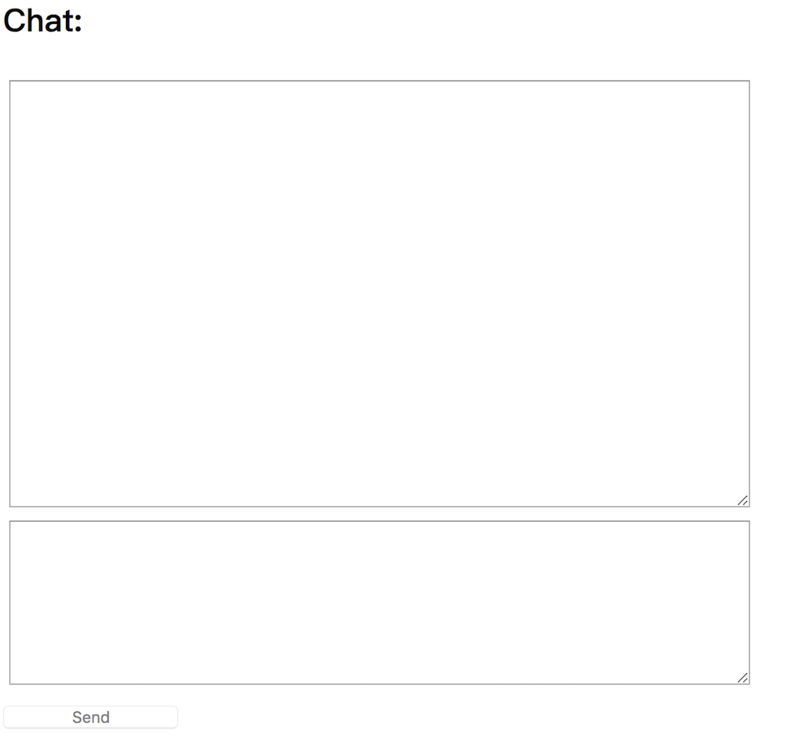 你可以想像这样一个场景,在两台不同的 PC 上(一个称为 A,另一个称为B),用户打开浏览器,在页面上显示两个textarea,一个作为文本输入框,另一个作为聊天记录的显示框。如下图所示: