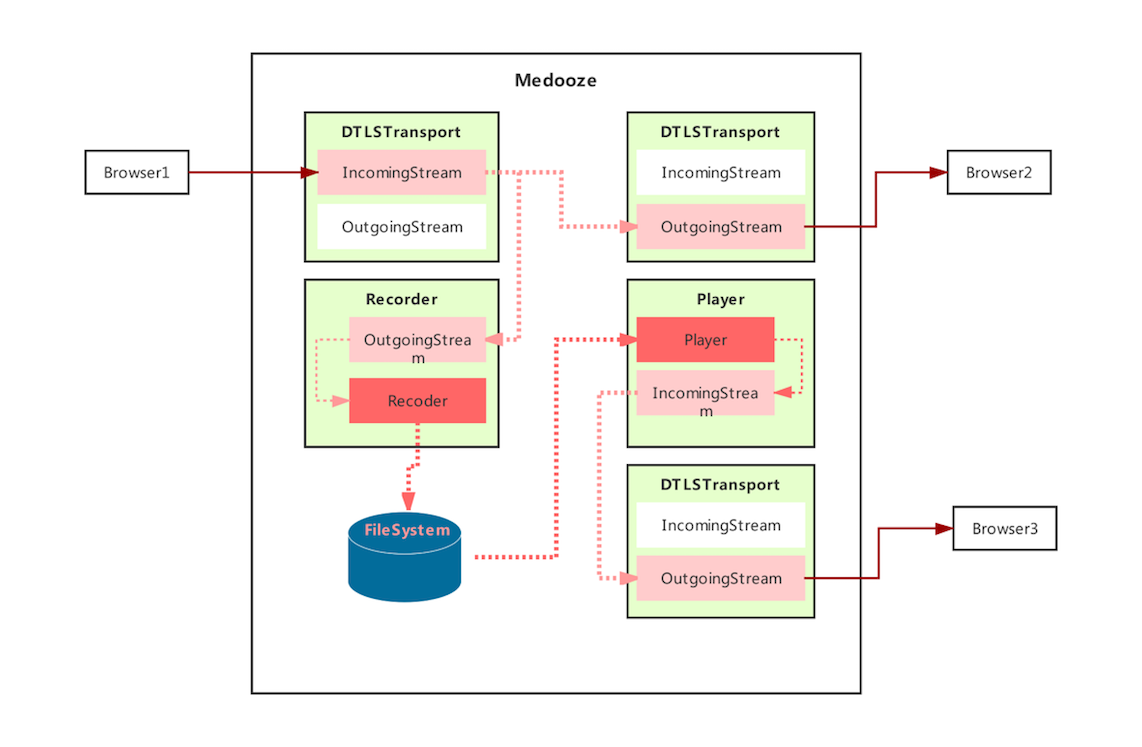 下图是Medooze的录制回放模型: