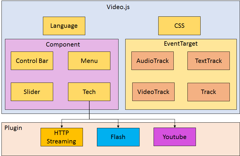 - Tech,是 Technique 的缩写,表示采用的播放器技术。其实它就是为播放器插件提供抽象接口。video.js 默认使用的是 HTML5 播放器。