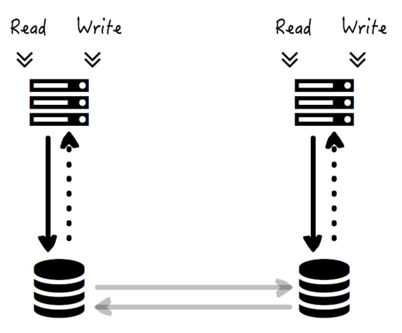 Multi-Master 架构是指存在多个 Master(主)节点,各自都提供完整的读写服务,数据备份之间的互相拷贝为了不影响读写请求的性能,通常是异步进行的。