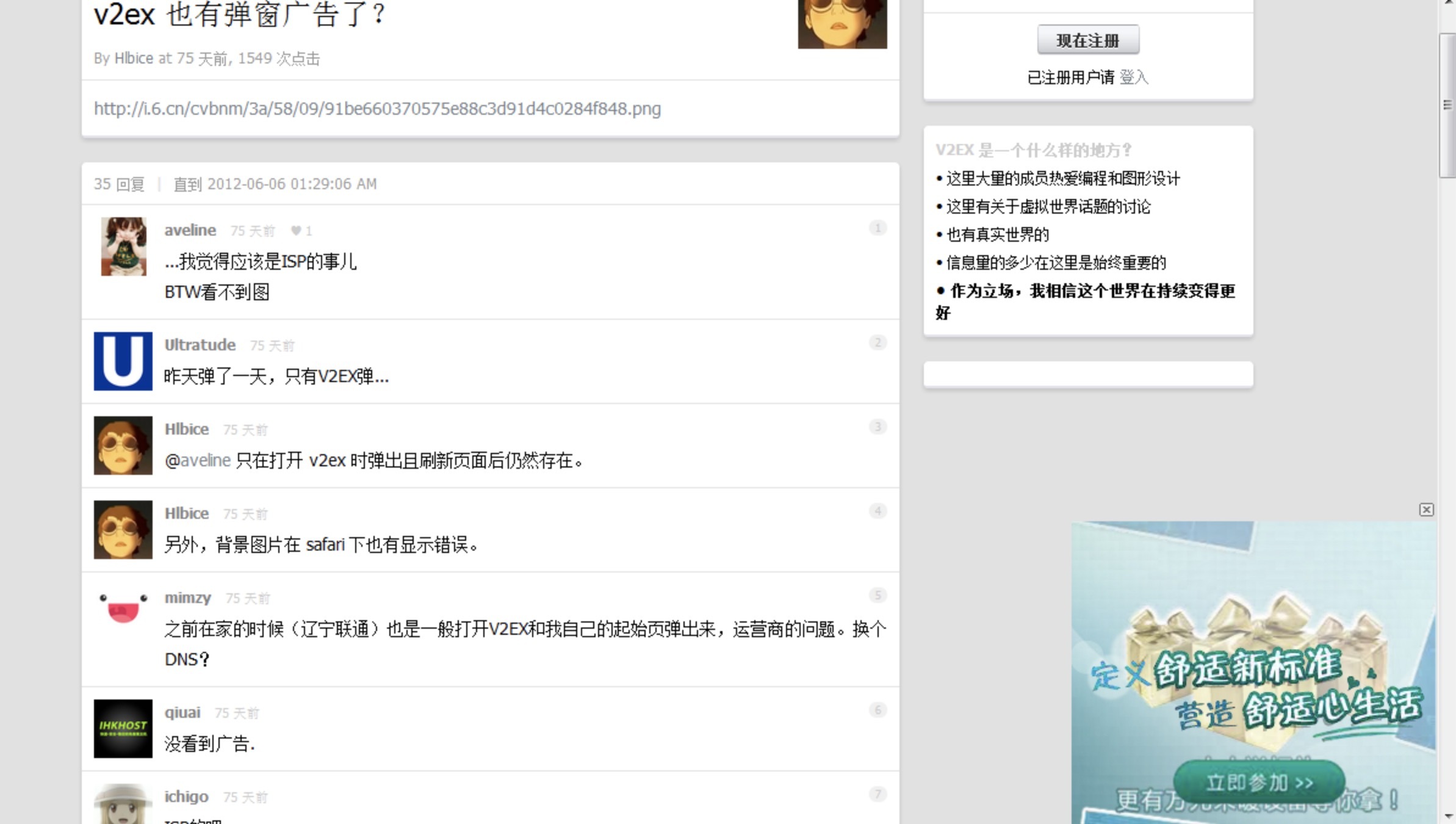 我有一个个人的博客网站,有一次有读者跟我说:“你为什么投放垃圾广告?”一开始我还很纳闷,我可从来没有干过这事儿啊,怎么会有广告,后来才知道,其实,这就是因为遭遇了无良运营商的 HTTP 劫持。下面的这个截屏(来自这篇文章),右下角的广告就是通过 HTTP 劫持干的。