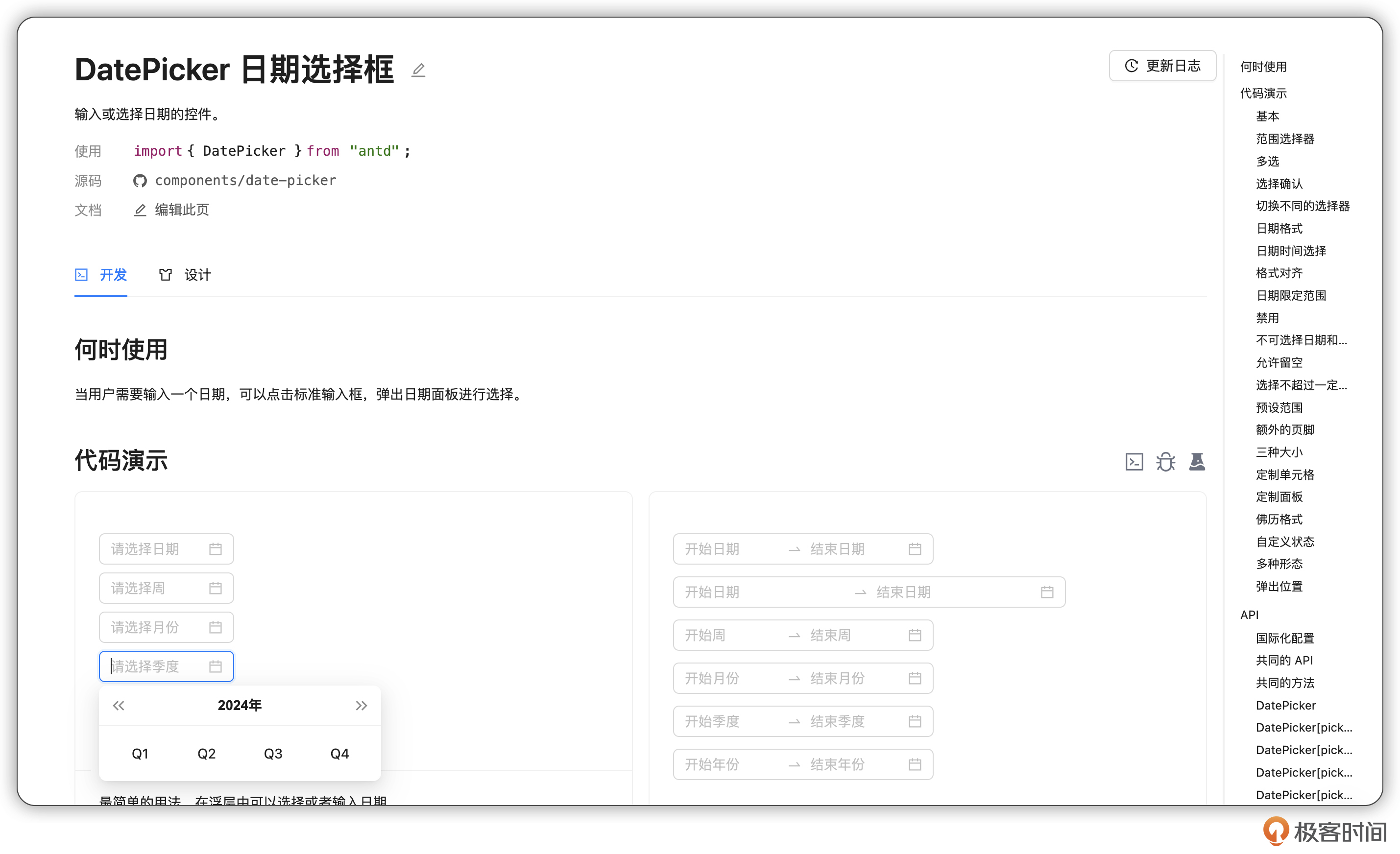 AntD是一款很优秀的前端组件库,我们来看看其中DatePicker日期组件的storybook的信息组成。