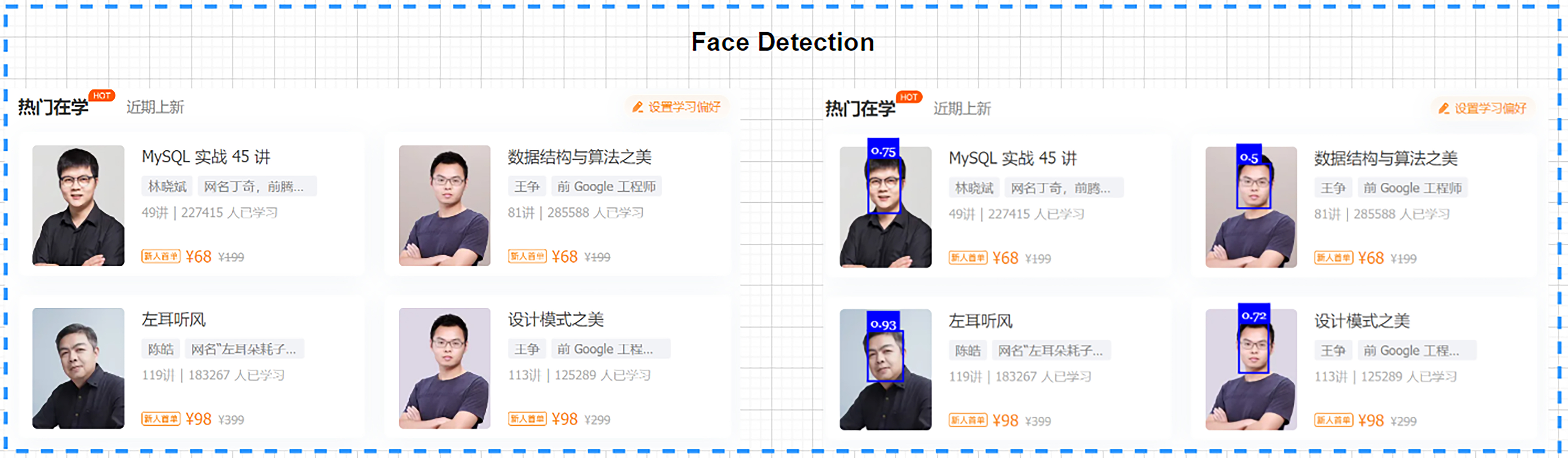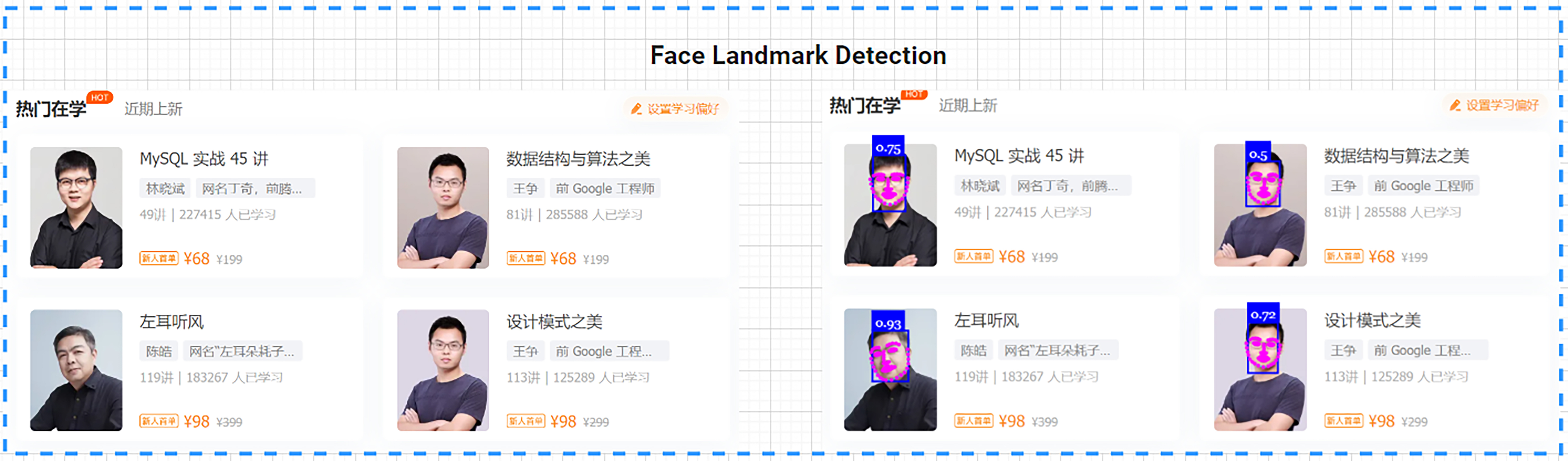 这里,我将极客时间首页的一张带有几位其他老师头像的作品图片作为输入进行测试。