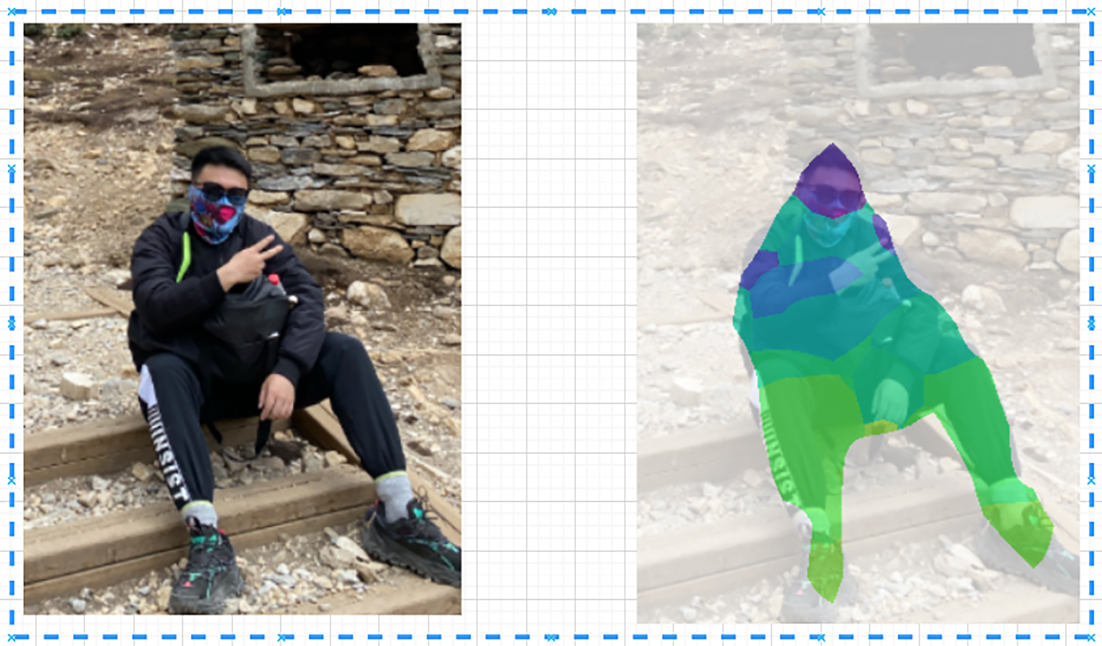 从检测结果我们可以看到,BodyPix能够大致将图片中的人物进行检测并标识,但是识别效果并不是很符合预期。不过问题其实不在于模型本身,而是这类结构的图像在其训练数据集中占比不高。因此优化方法就是将其作为预训练模型,使用我们做测试的这类结构的图像再次训练,然后模型就能够很好地检测识别了。