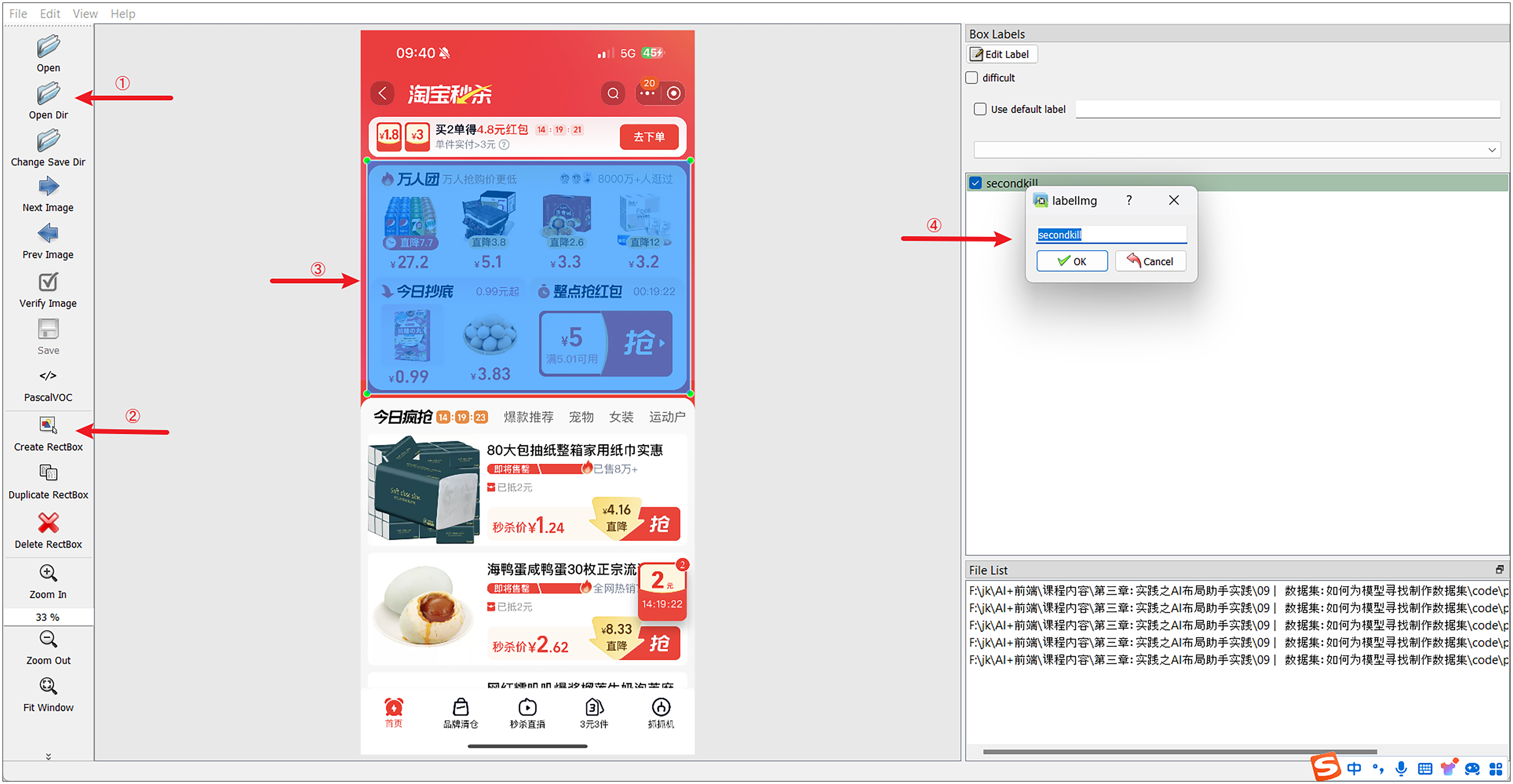 接下来我们点击标号 ② Creat ReacBox 来创建一个 ReacBox,用于勾选需要打上标签的区域,比如选中标号 ③ 这个区域,然后我们就可以为勾选的区域打上标签,并且可以在标号 ④ 区域进行点击修改。