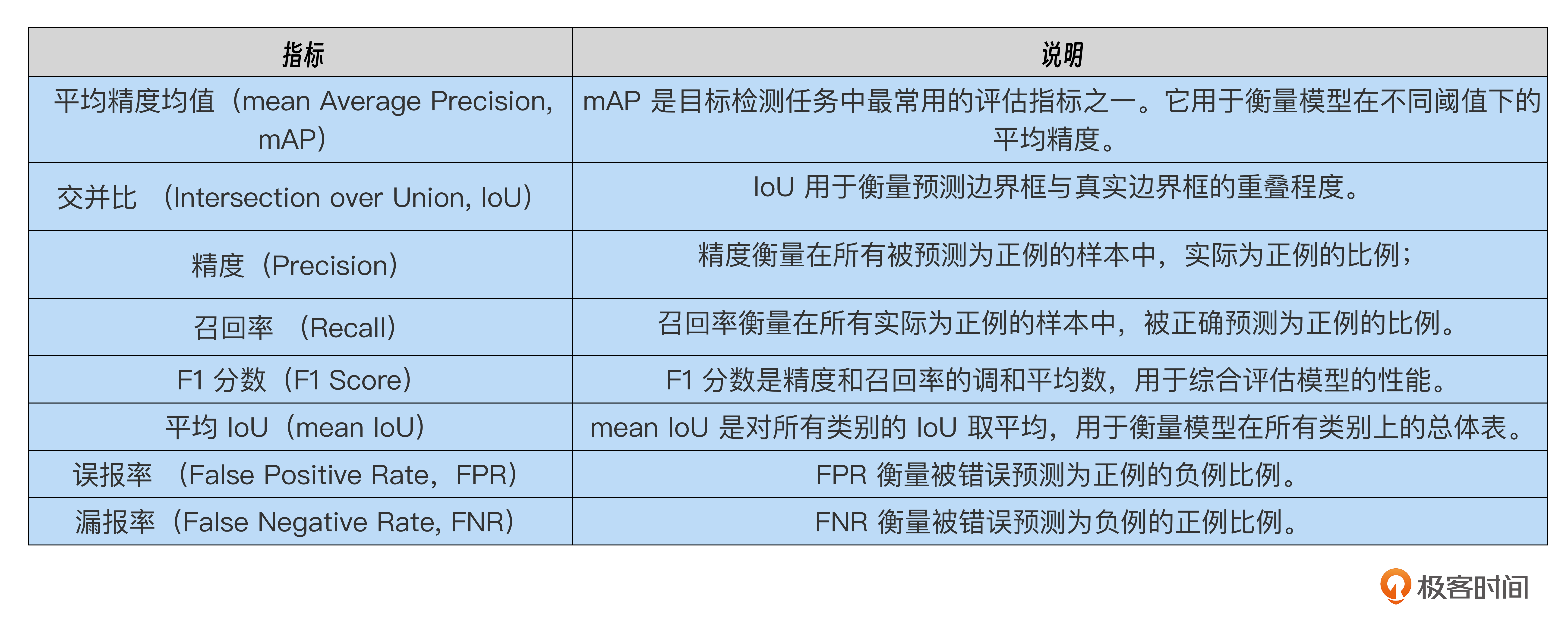 在目标检测的数据集评估标准中主要包括以下几个指标。