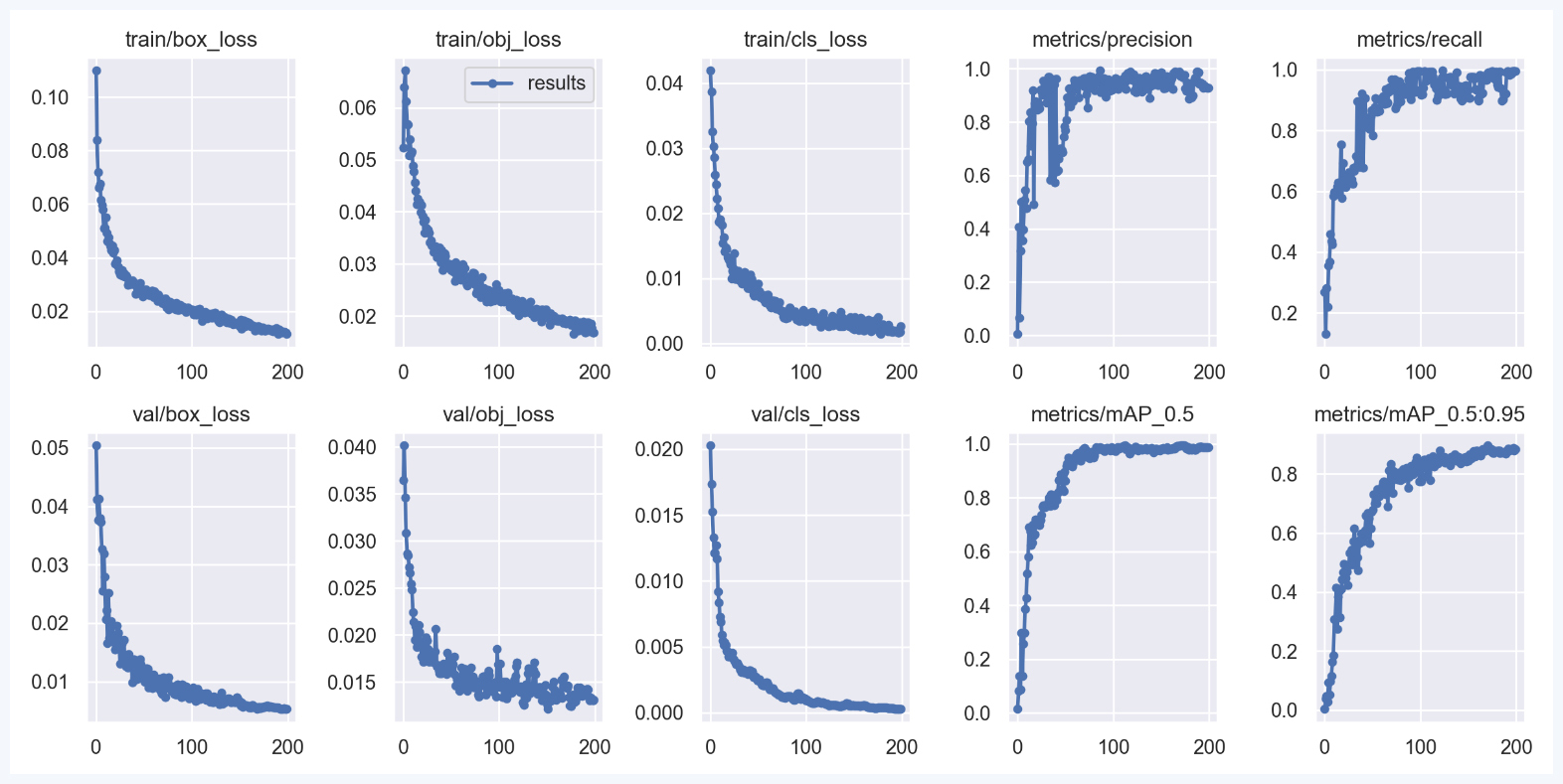训练结束后,打开位于runs/train文件夹下的最后一次训练结果,就能看到里面有一张训练结果图,我们来一起分析下这个训练结果图: