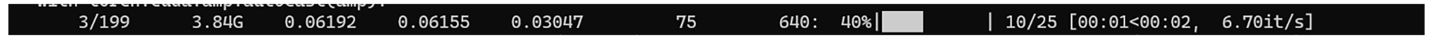 在训练的过程中,命令行程序会不断有log打出,输出当前批次的训练进度(如下图为第三批次的一条训练进度日志)。同时,在目录的runs/train文件夹下会显示完成定长批次训练后的结果,直到完成我们设定的epochs次数结束训练。