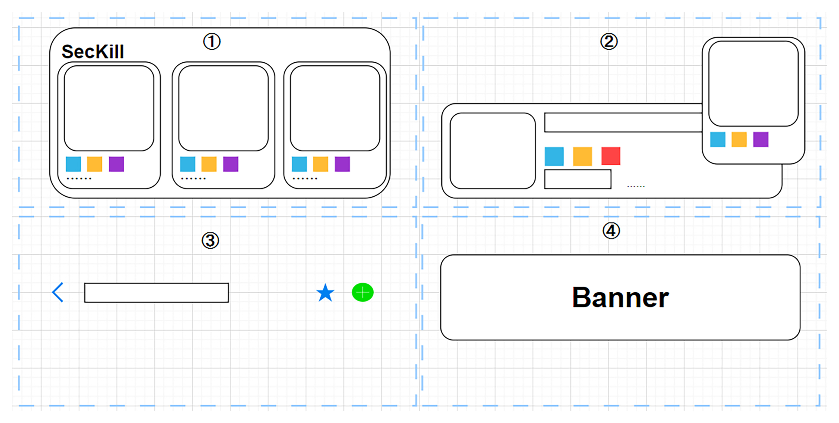 其次是功能卡片(如下图①),这一类卡片往往就是带有活动属性的卡片,比如秒杀模块。功能卡片会具有一个跳转功能,在模块上也会承接到所见所得的商品。