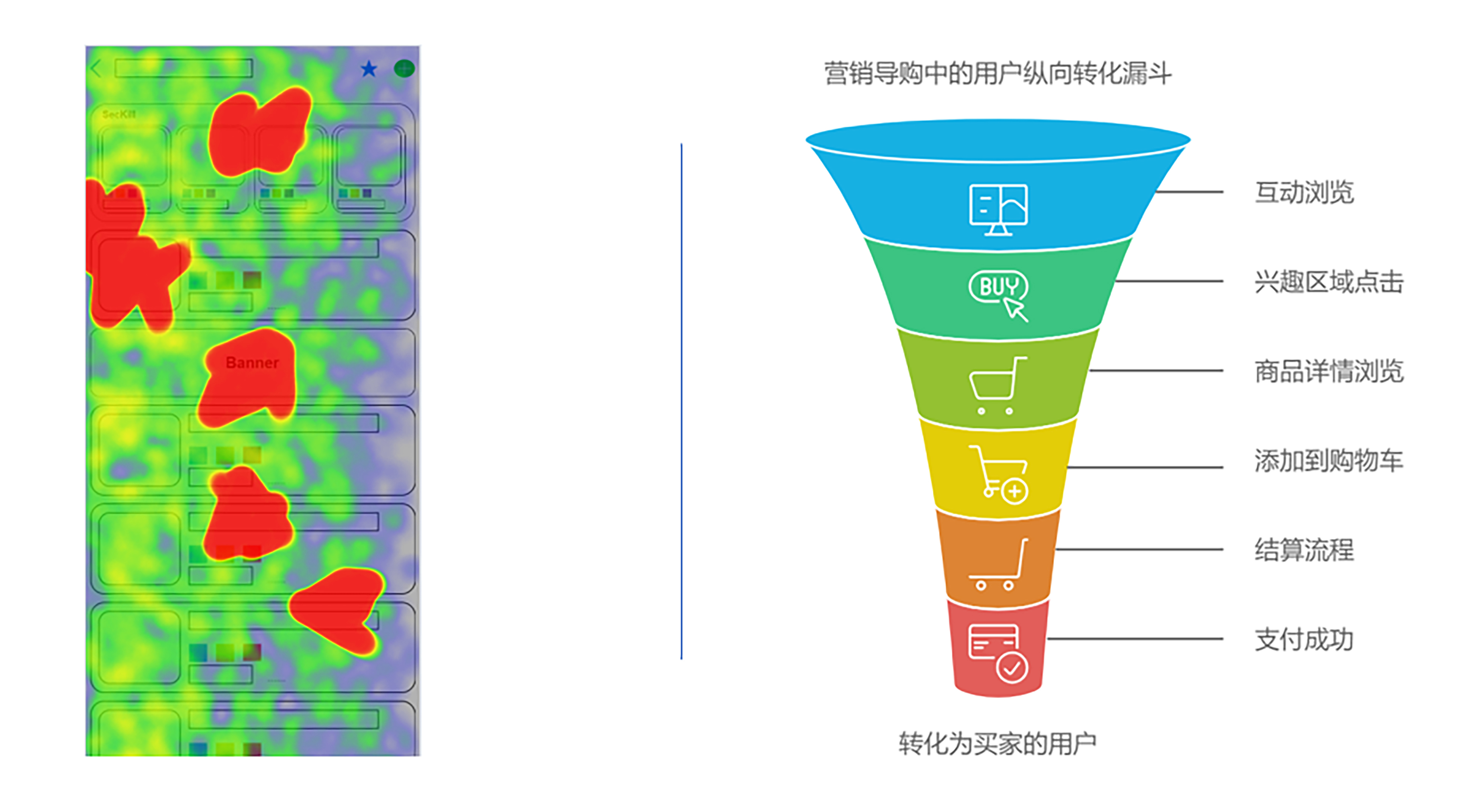结合上一节课的热力图,我们以用户从进入页面到完成支付为例来更为形象地展示“纵向”。