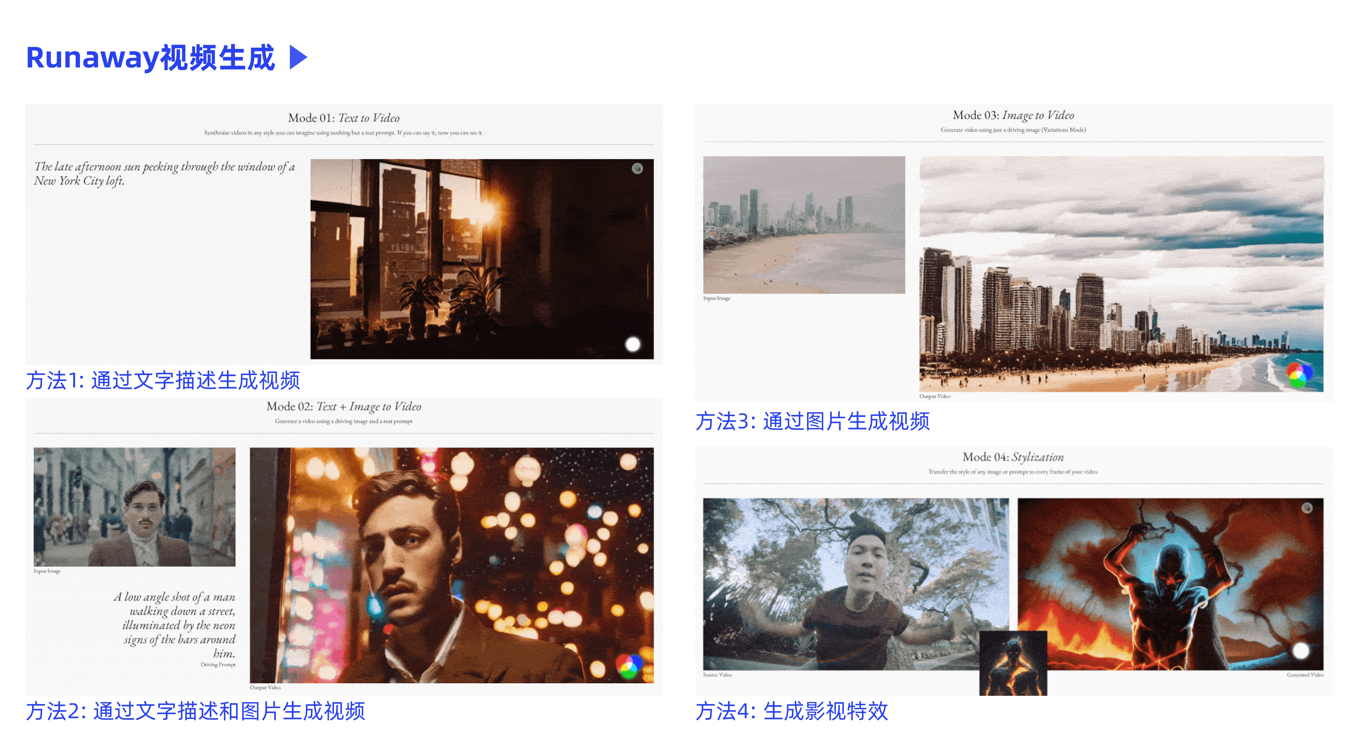 当时的视频实现方式,基本都是将多张静态图片生硬地用时间轴连成视频,无法让内容本身动起来。而如今,初创公司Runaway已经推出了文字生成视频的工具Gen-2,只需一张照片或者简单的文案描述就能生成一段视频,甚至还可以生成影视特效。