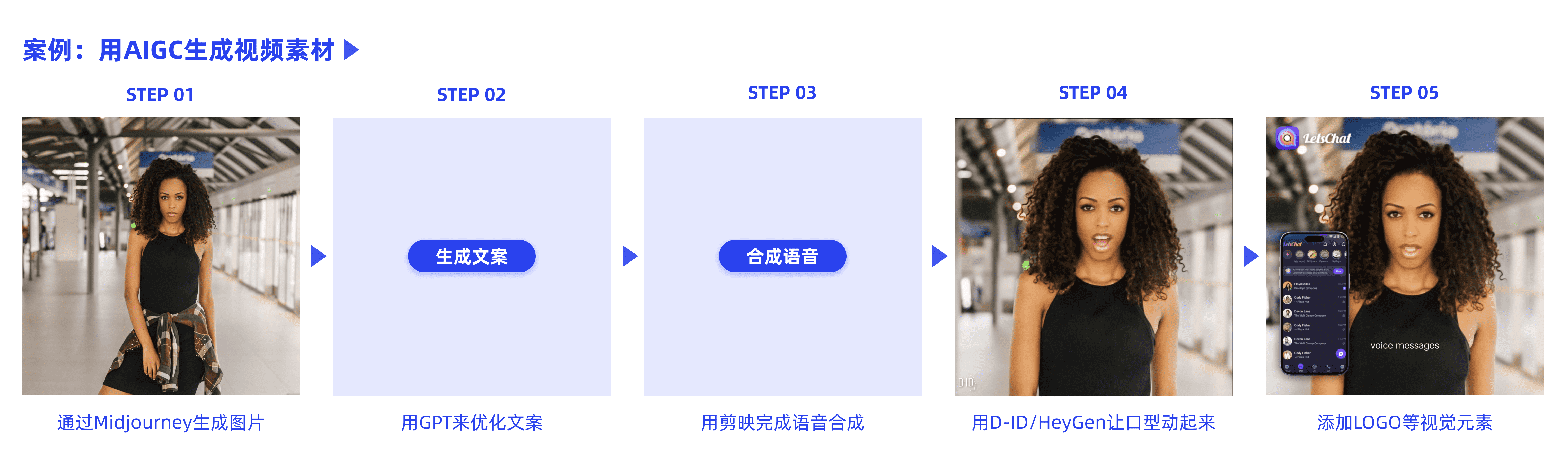 如果我们要生成视频素材该怎么办呢?在许多业务中,视频素材的转化率和CPI单价要比图片更为优异,但视频类的投放素材制作成本较高且十分耗时。有些视频素材还需要找广告公司拍摄,由真人演员演绎,制作周期长达1个月。
