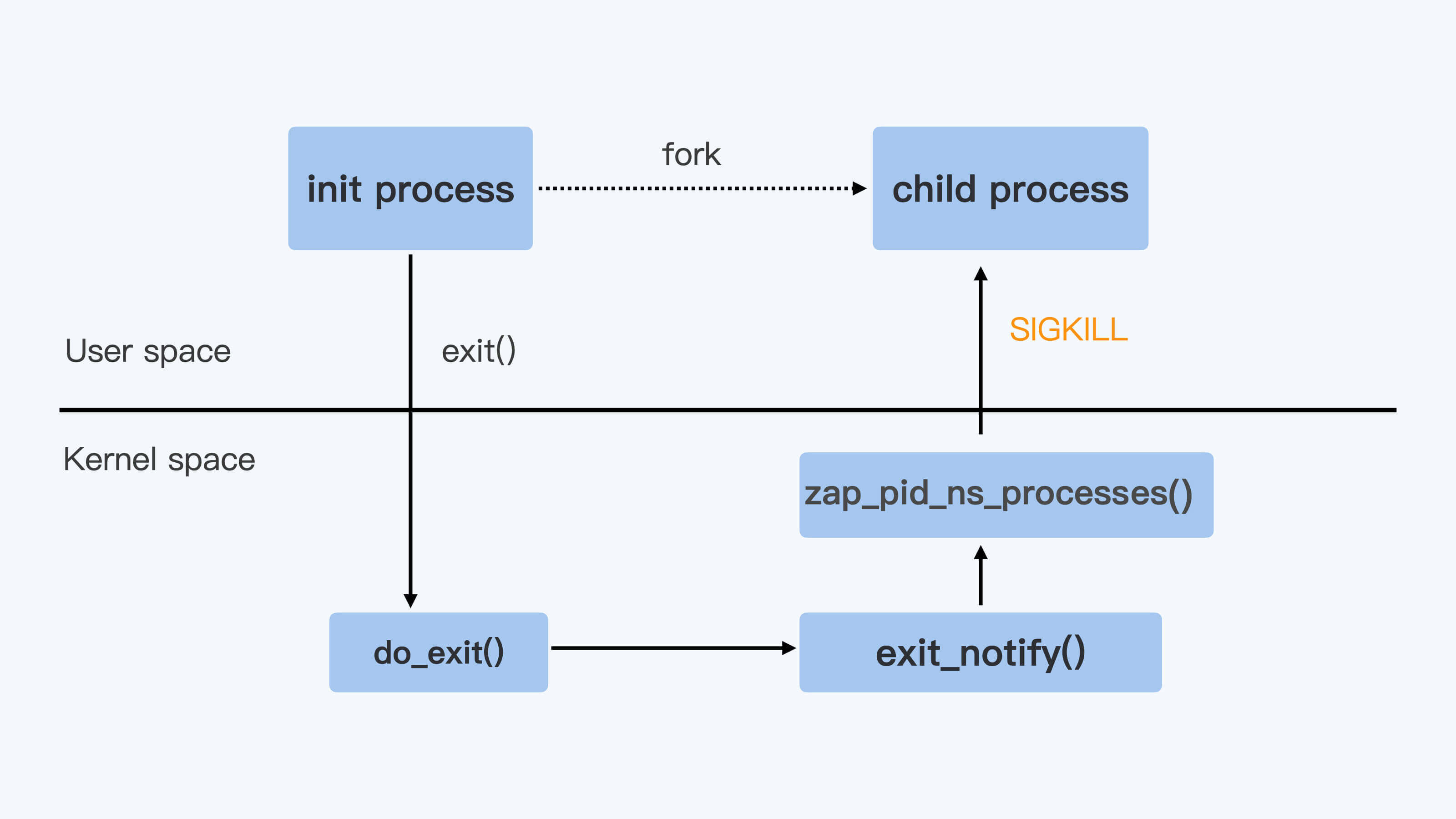 还是说,这里的意思是 Linux 中普通进程 KILL 中调用的是 exit_notify() 函数,而容器内的进程调用的是 zap_pid_ns_processes() 函数呢?