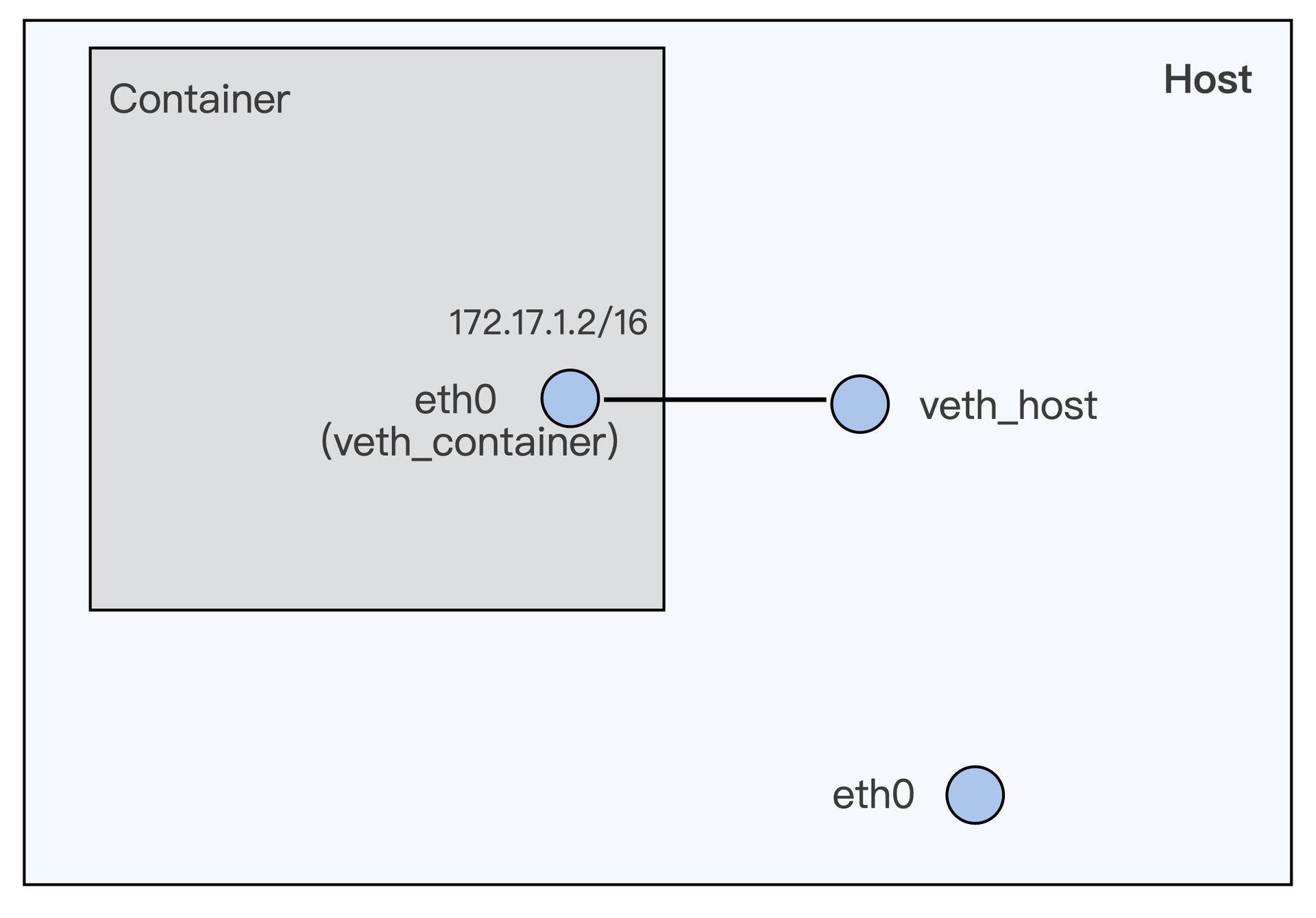 不过呢,从veth的这种网络接口配置上看,一个数据包要从容器里发送到宿主机外,需要先从容器里的eth0 (veth_container) 把包发送到宿主机上veth_host,然后再在宿主机上通过nat或者路由的方式,经过宿主机上的eth0向外发送。
