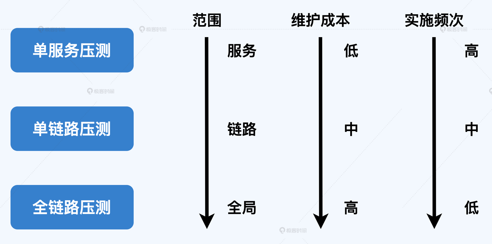 全链路压测的擅长点是定期摸底系统整体容量,而常态的容量保障工作应当覆盖每个业务各个接口,这些毛细血管依然需要单链路压测和单服务压测去保障。