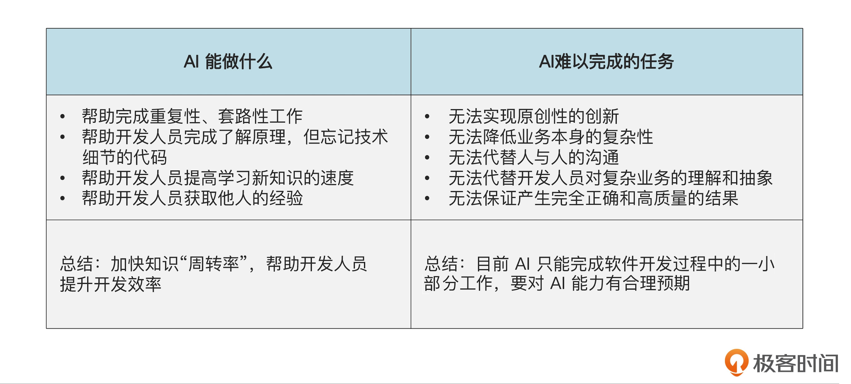 接下来,我们一起画张表格,总结一下AI能做什么以及不能做什么。