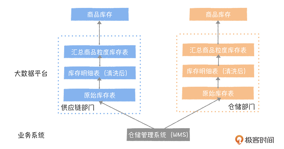 如果你是这个公司的老板, 肯定会问,既然供应链团队已经计算出来了商品库存的数据,为什么市场部门不直接用,还要从头再计算一遍呢?这个看似很傻的行为,却处处出现在我们日常的数据建设中。