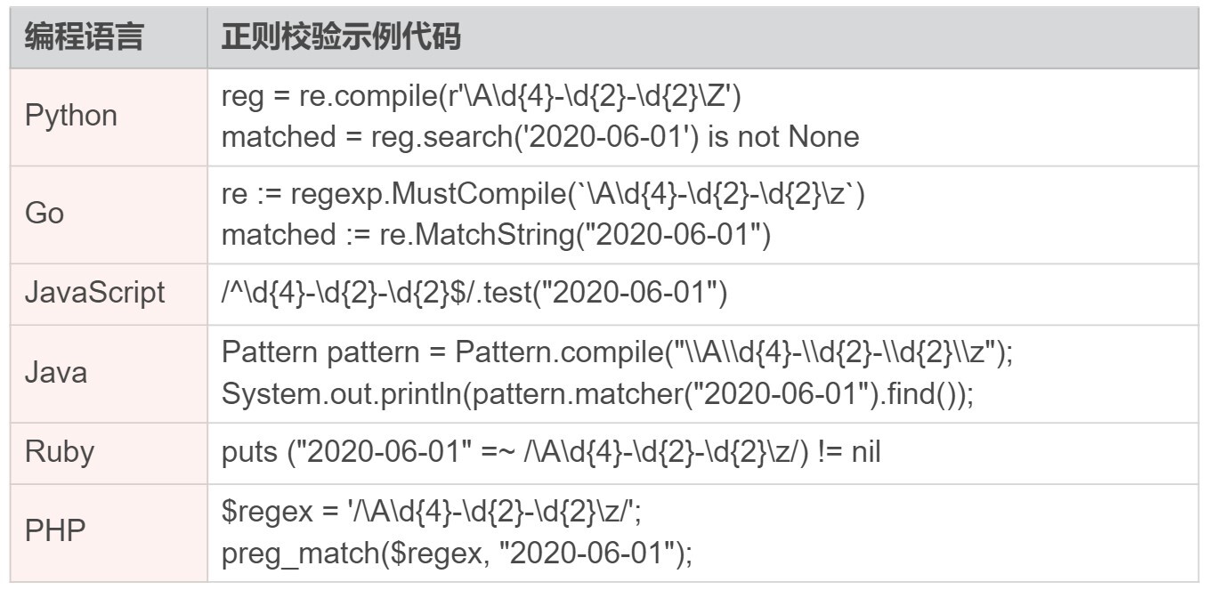 另外,需要注意的是,和 Python 语言不同,在 Go 语言中,正则尾部断言使用的是 \z,而不是 \Z。