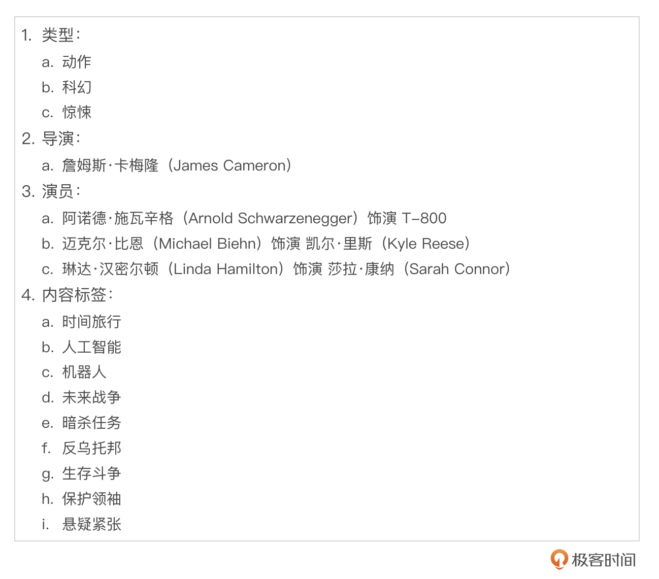 构造Prompt:提取电影《终结者》的关键信息,并结构化地展示出来。
