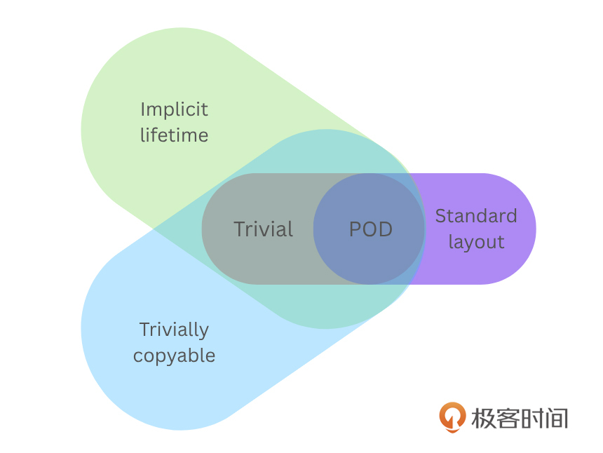 简单讨论一下 POD,它实际上在 C++ 里可以看作多个类型特征的组合: