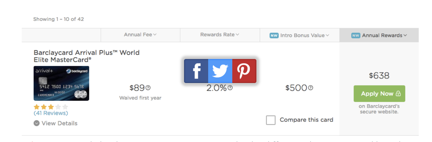 以NerdWallet的信用卡推荐页面为例,它要增加的指标就是通过网站提供的链接申请信用卡的次数。