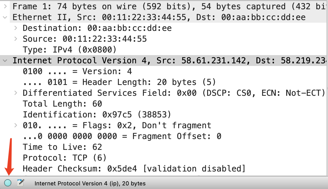 报文详情区域也可以称为协议栈区域。在这里,我们可以清晰地看到TCP/IP模型的协议层级。