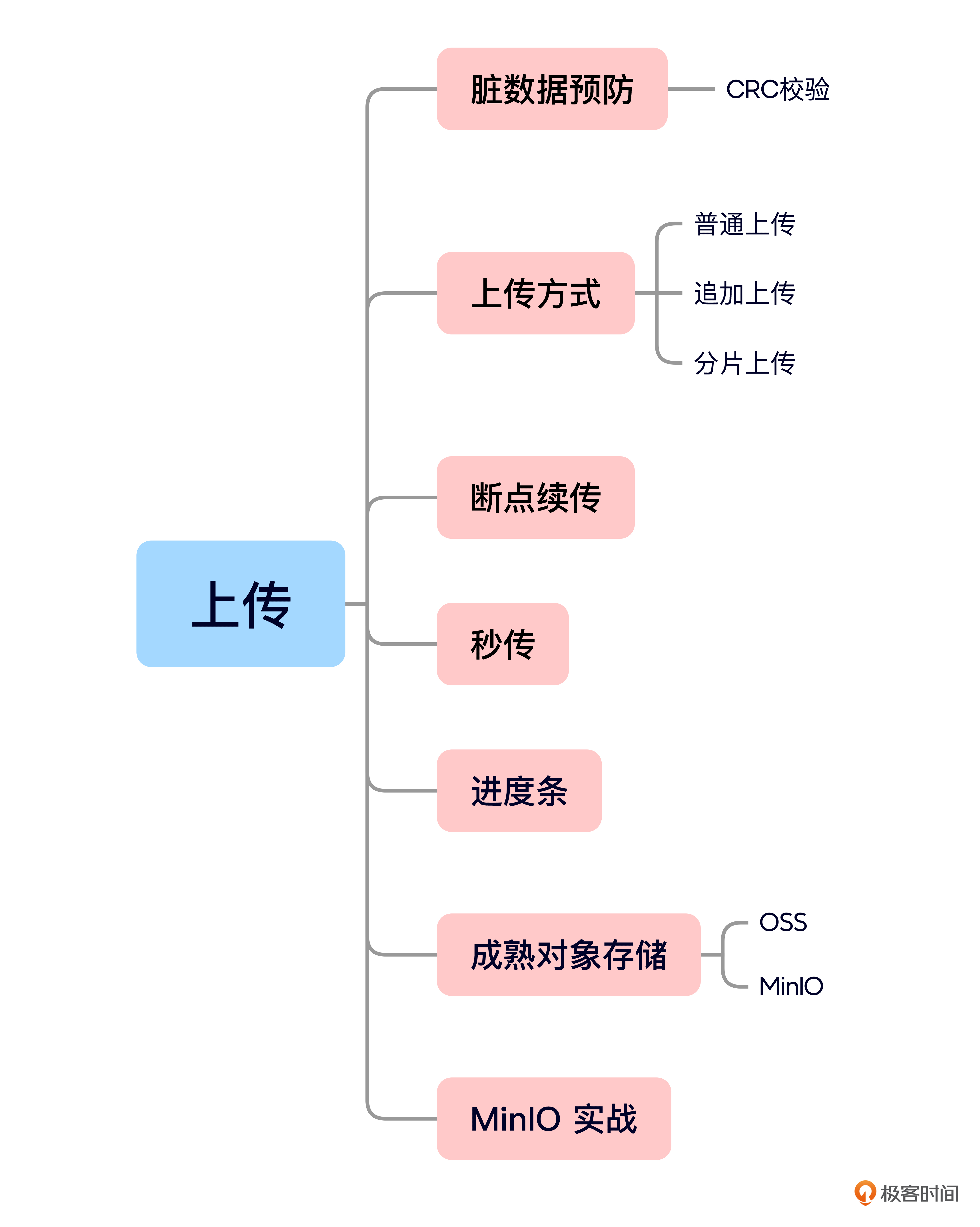 在实践环节,我们基于 MinIO 进行了普通上传与分片上传的对比实验,你可以课后自己上手试一试。