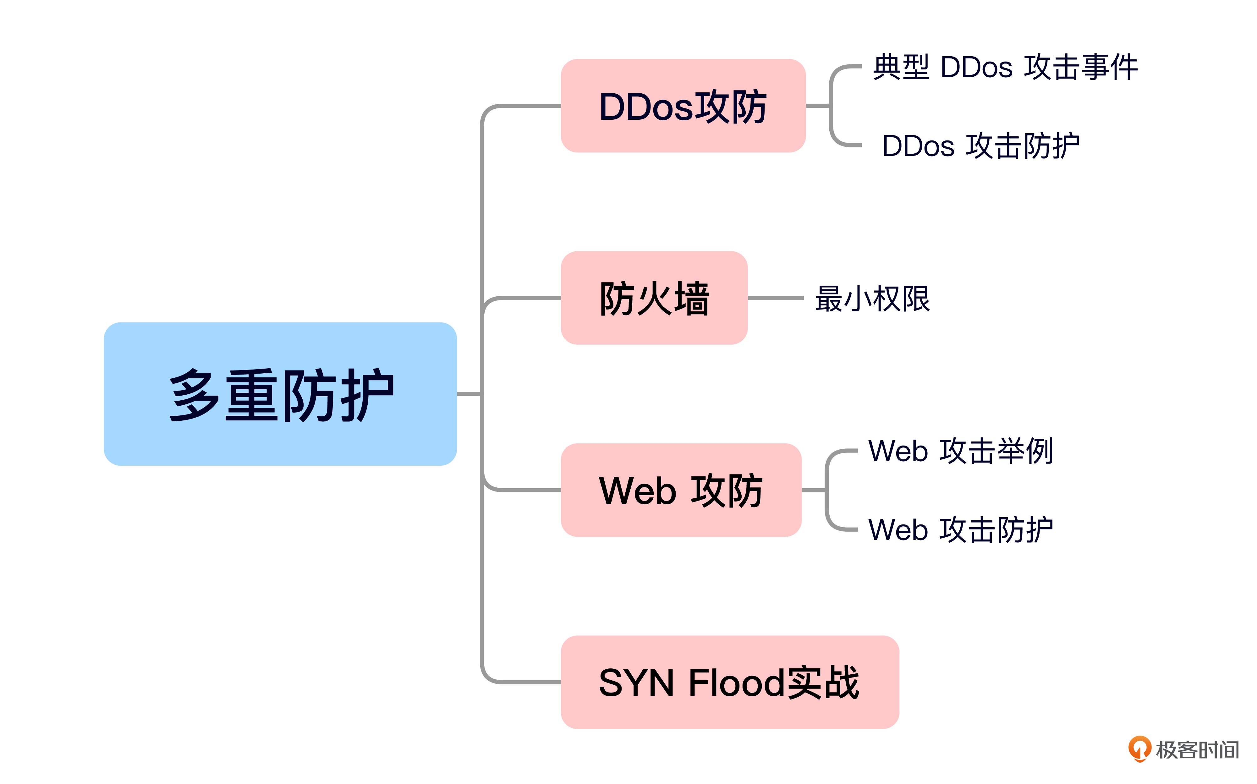 今天这节课,我们将重点从DDOS防护、边界安全和Web应用安全三个方面,分析常见威胁及相应的防护策略。