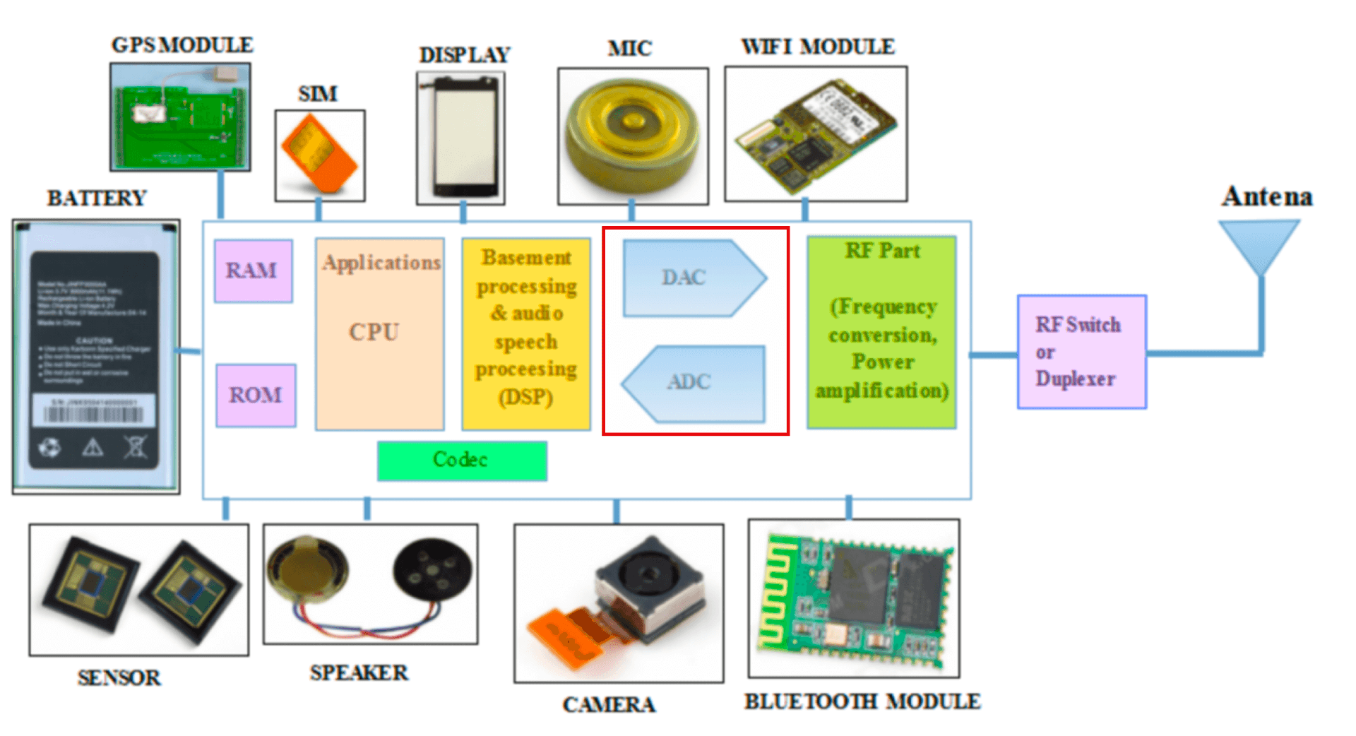 - 模拟 IC 三大产品:射频器件、电源管理装置和模数/数模转换器。其中的模数/数模转换器,实现模拟信号和数字信号相互转换。