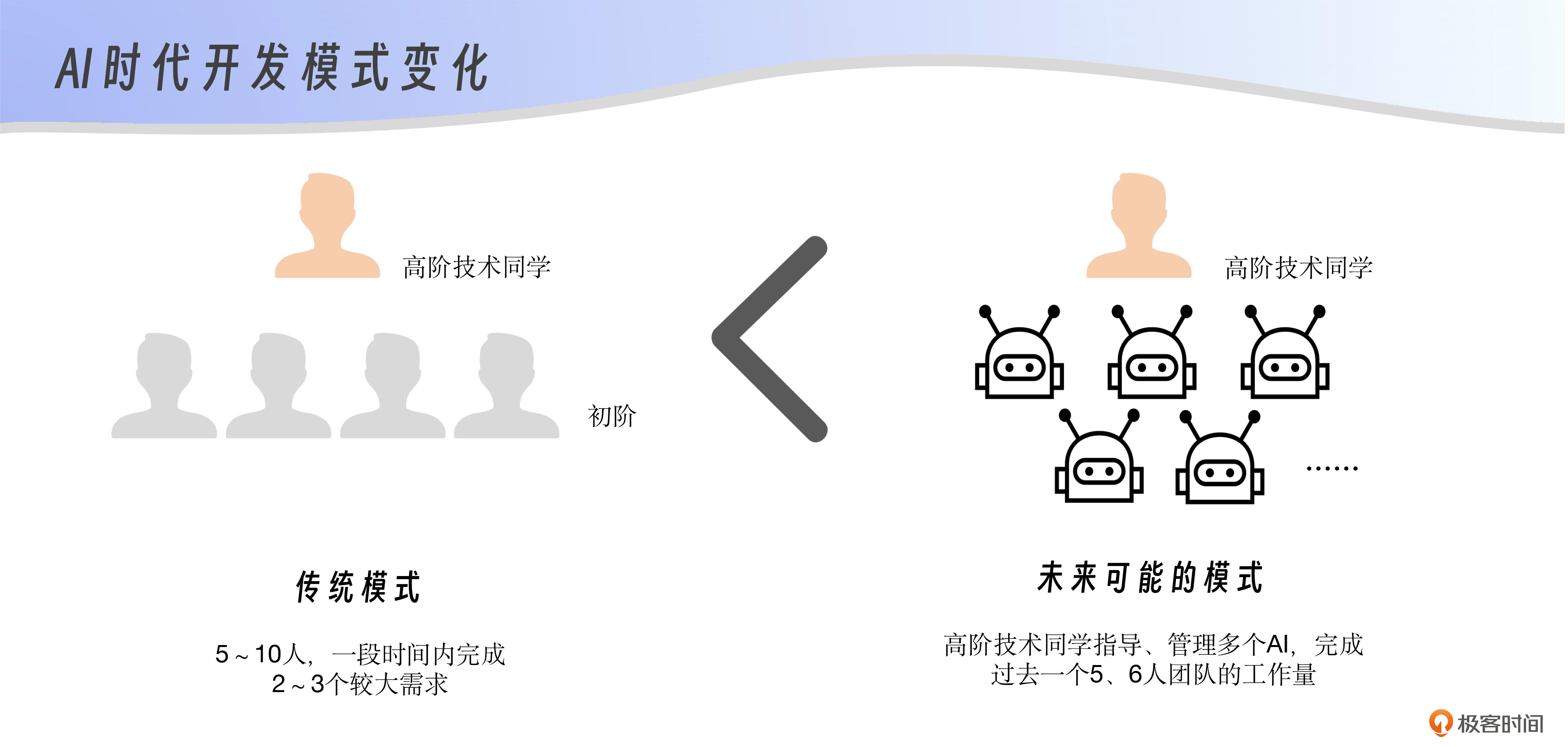 在过去,一线的工程师主要是亲自写代码,很多细节的东西可能就妥协一下,或者因为时间和能力因素被抛弃了。但现在有了 AI,解放了编码的生产力,我们的开发者实际上就更像是 AI 的伙伴和管理者,不仅需要理解和评估 AI 的代码,也需要用到一些技巧和经验让 AI 写出更好的代码。这个角色实际上就更接近于一线的技术管理者。