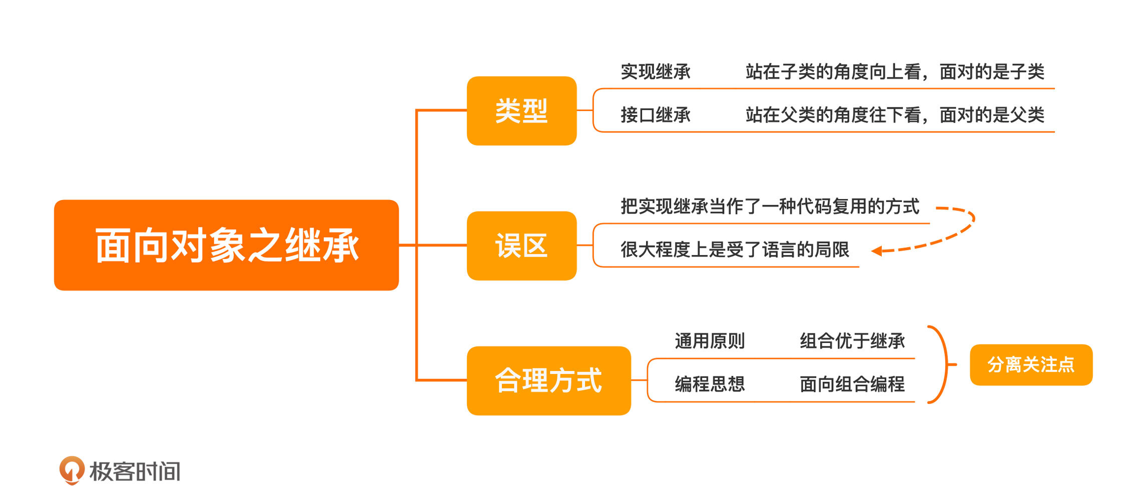 不过,接口继承更多是与多态相关,我们暂且放一放,留到下一讲再来讨论。这一讲,我们还是主要来说说实现继承。其实,实现继承并不是一种好的做法。