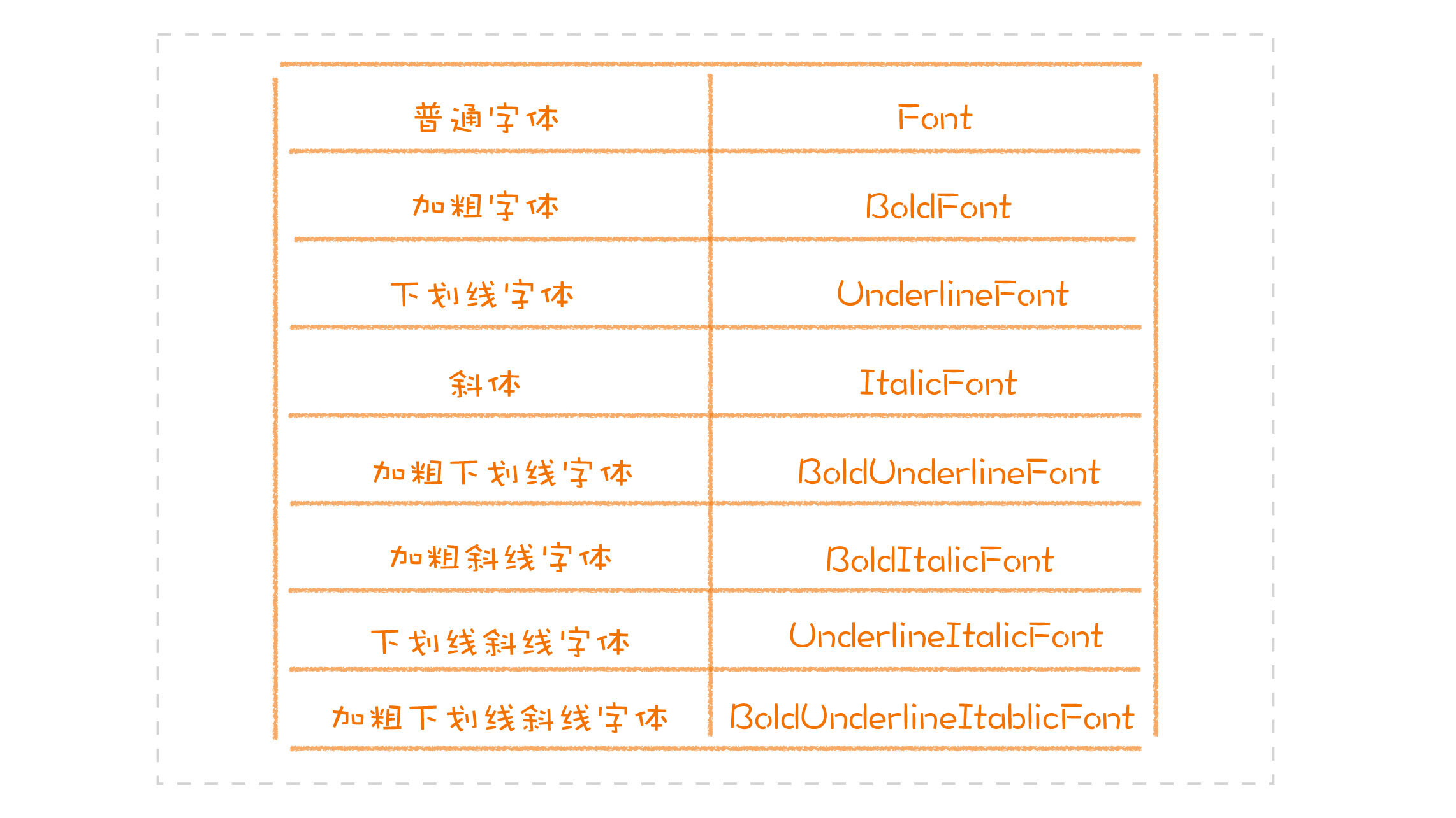 前面只是讲了面向组合编程在思考方式的转变,下面我们再来看设计上的差异。举个例子,我们有个字体类(Font),现在的需求是,字体能够加粗(Bold)、能够有下划线(Underline)、还要支持斜体(Italic),而且这些能力之间是任意组合的。