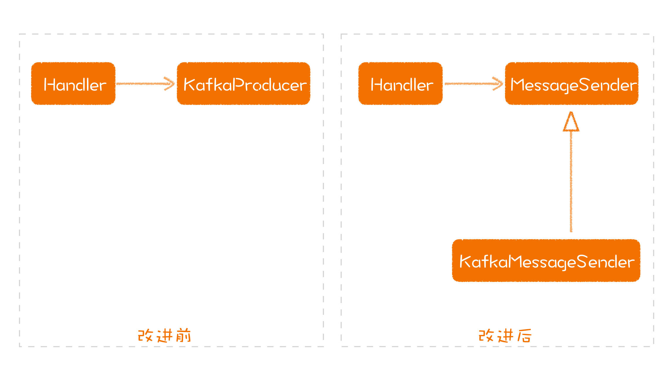 如果未来我们要替换掉Kafka,只要重写一个MessageSender就好了,其他部分并不需要改变。这样一来,我们就可以让高层模块保持相对稳定,不会随着低层代码的改变而改变。