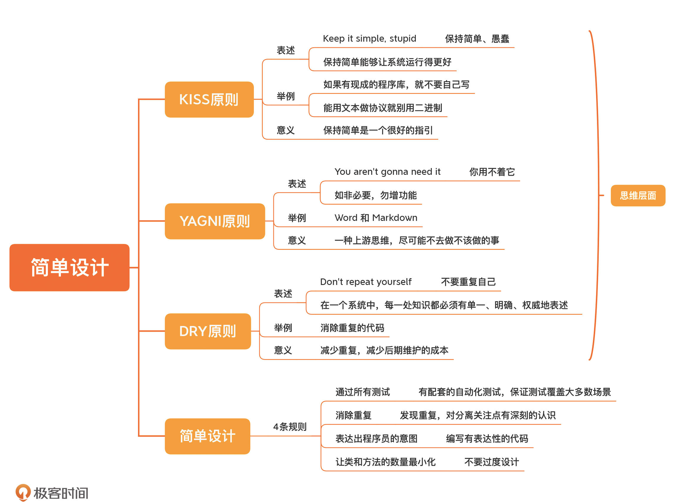 我把这些原则放到这个部分的最后来讲,是因为它们并不是指导你具体如何编码的原则,它们更像是一种思考方法、一种行为准则。