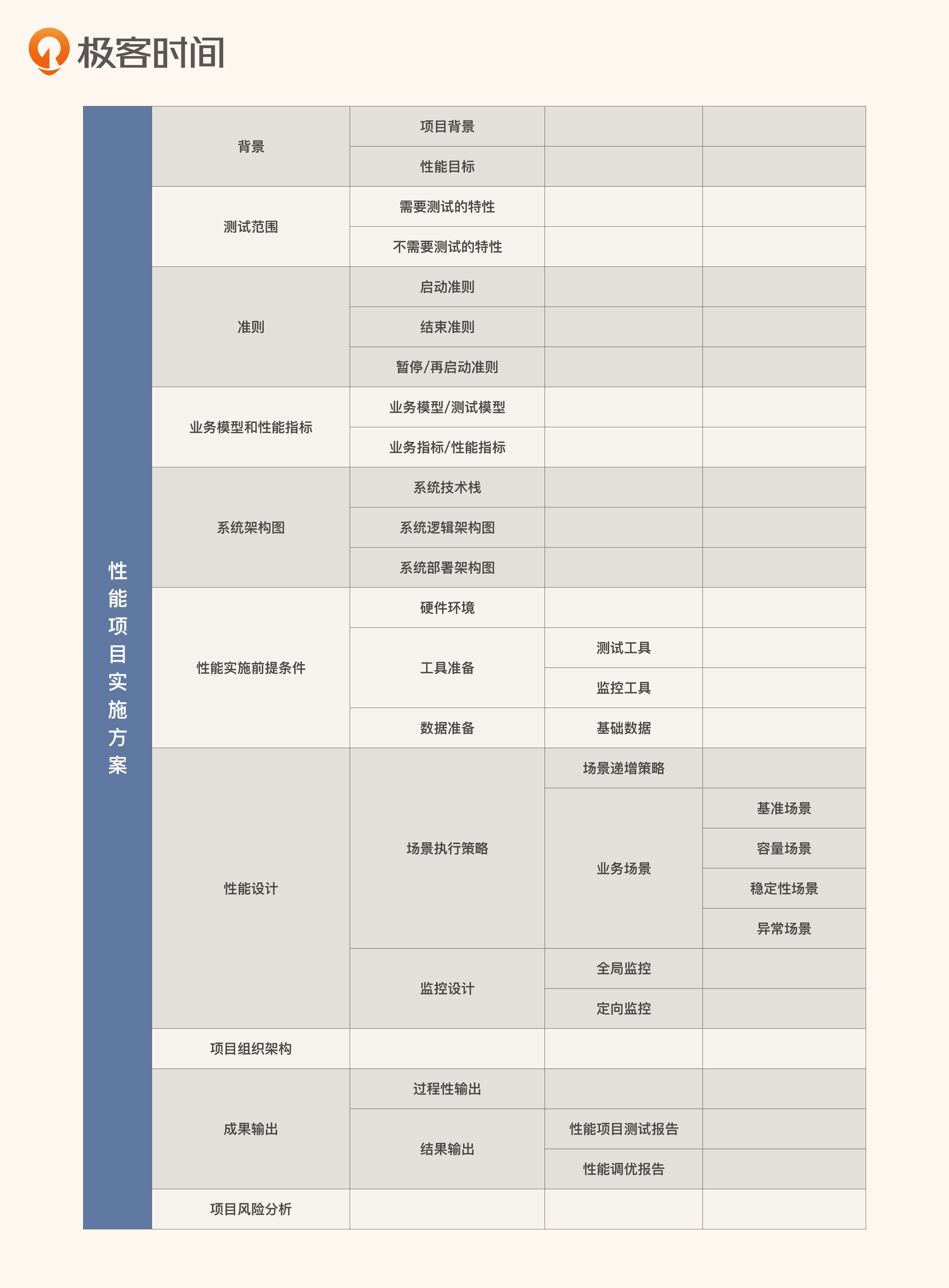 因为我们这个课程需要基于一个完整的项目来编写,所以,我把这个项目整体的方案写在这里。你将看到,我认为的真正完整并且有意义的性能方案是什么样子,希望能给你一些启发。