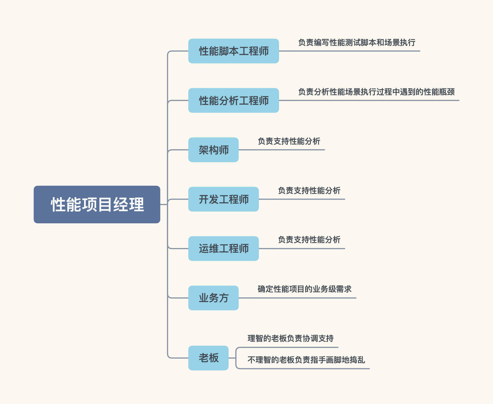 这是我按照事情来划分的,而非职场中的工作职位,我觉得这是一个合理的组织架构。在这张图中,性能脚本工程师所负责的事情,其实是现在大部分性能从业人员都在做,并且仅仅在做的事。至于性能分析工程师,在很多性能项目中几乎不存在,也没有这样的固定职位。其实,性能分析工程师很有必要存在。