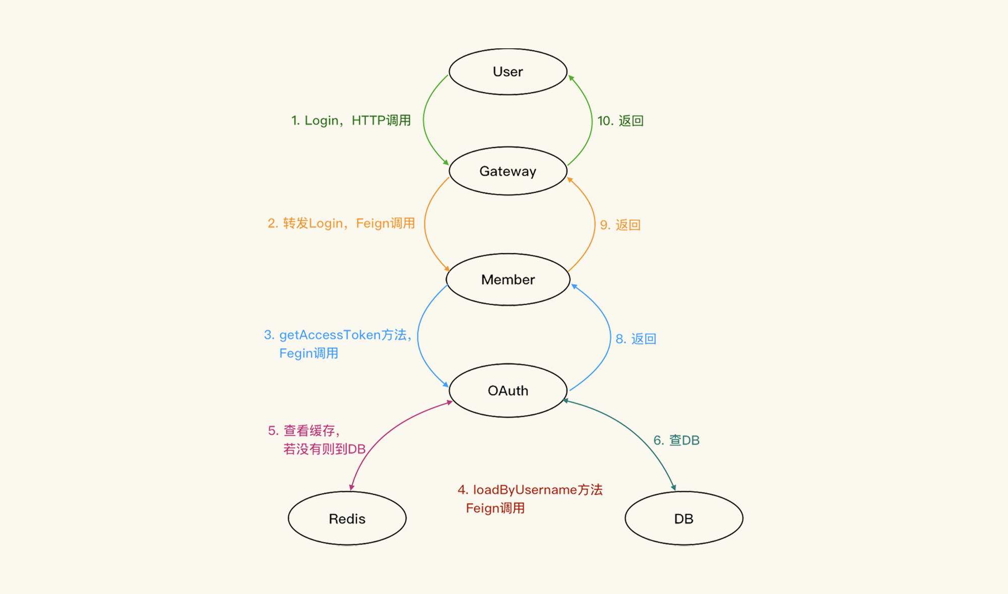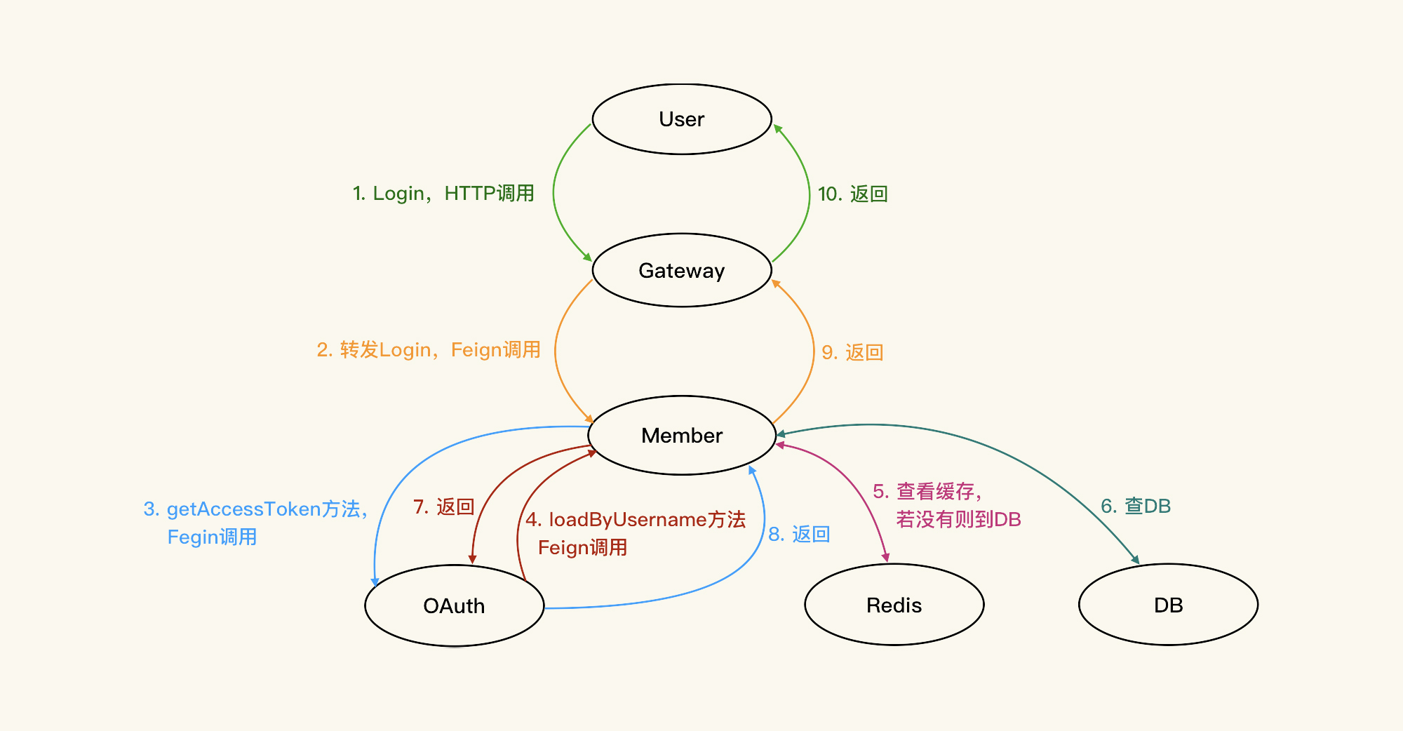 从这个架构图中可以看到,登录操作跨了Gateway/Member/Auth三个服务,连接了Redis/MySQL两个组件。图中的MongoDB虽然看上去有线,但实际上登录并没有用上。