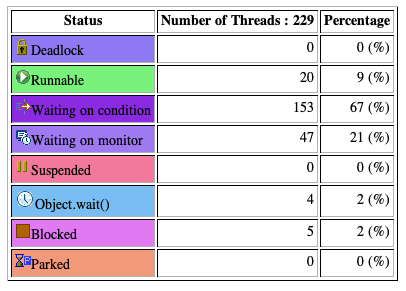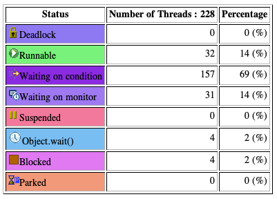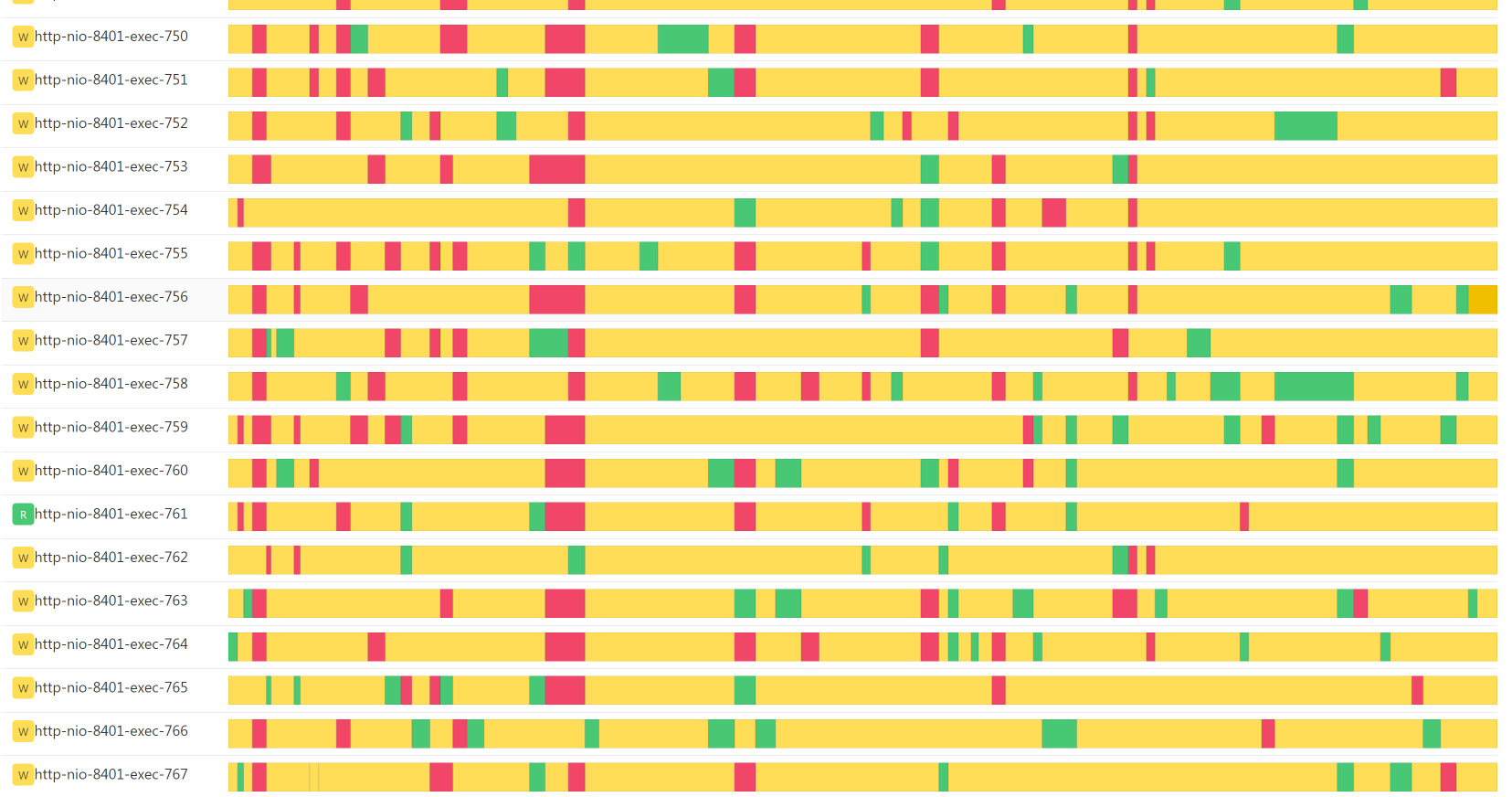按照这个证据链,我们应该先看进程。不过,仗着傻小子火气壮(俗称:艺高人胆大),我直接就去看线程状态了,想看看能不能凭经验蒙对一把。于是,我打开了Spring Boot Admin的线程页面: