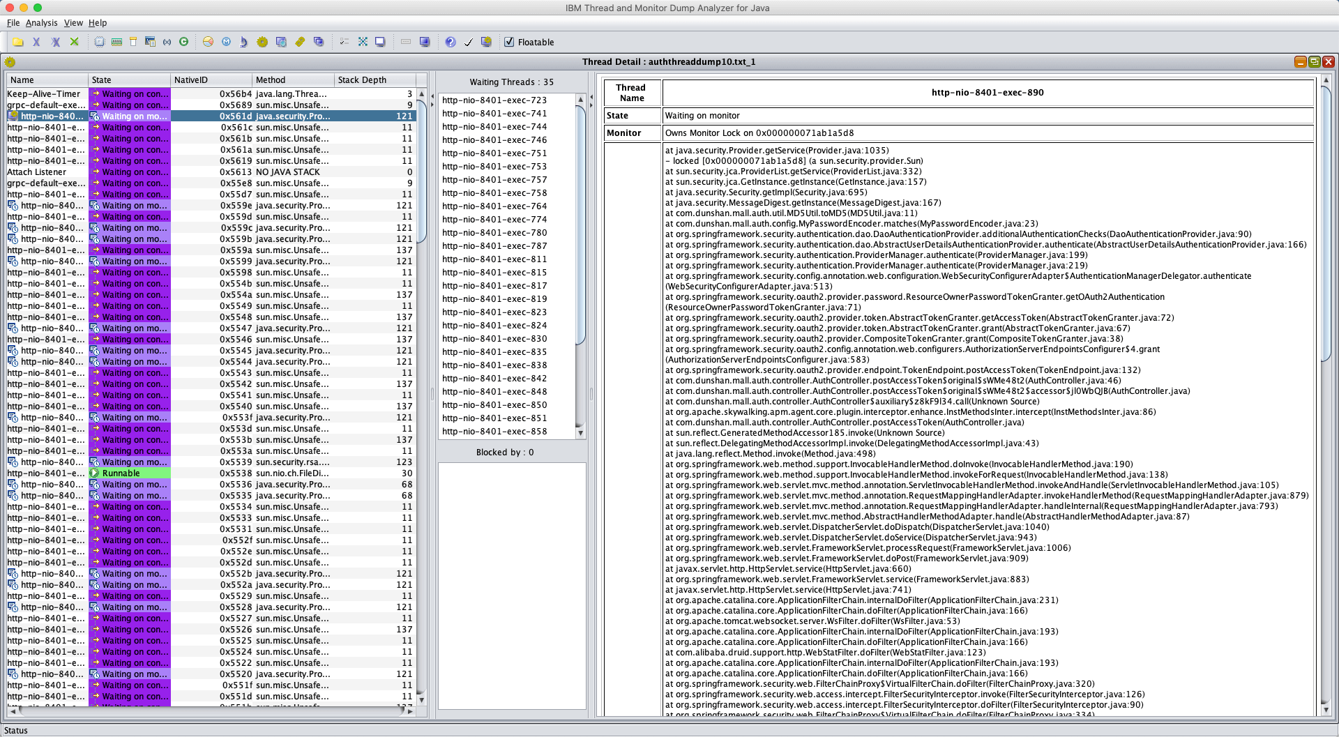 这两个栈的内容并不是同一时刻出现的,说明这个BLOCKED一直存在。但是不管怎么样,这个栈在做RSA加密,它和Token部分有关。