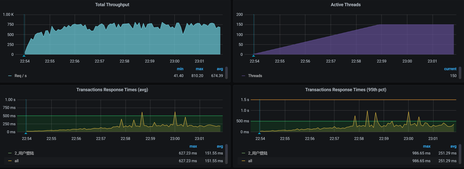 从曲线上看,登录接口能达到300TPS左右了。但是,我还是觉得不够好,因为从硬件资源上来看,再根据我以往的经验,它应该还能达到更高才对。