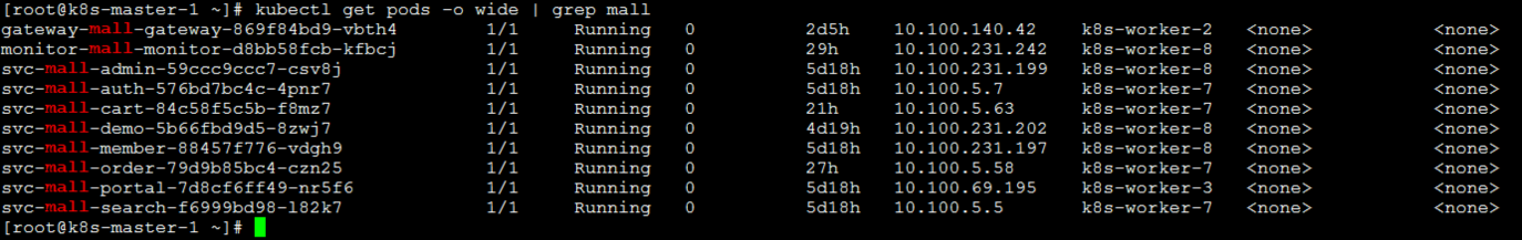 既然worker-7/8的CPU使用率要高一点,那我们就要查一下这两个节点上跑着什么样的服务。所以我们来看一下POD的分布,大概看一下每个POD在哪个worker节点上,以便后面分析POD相互之间的影响: