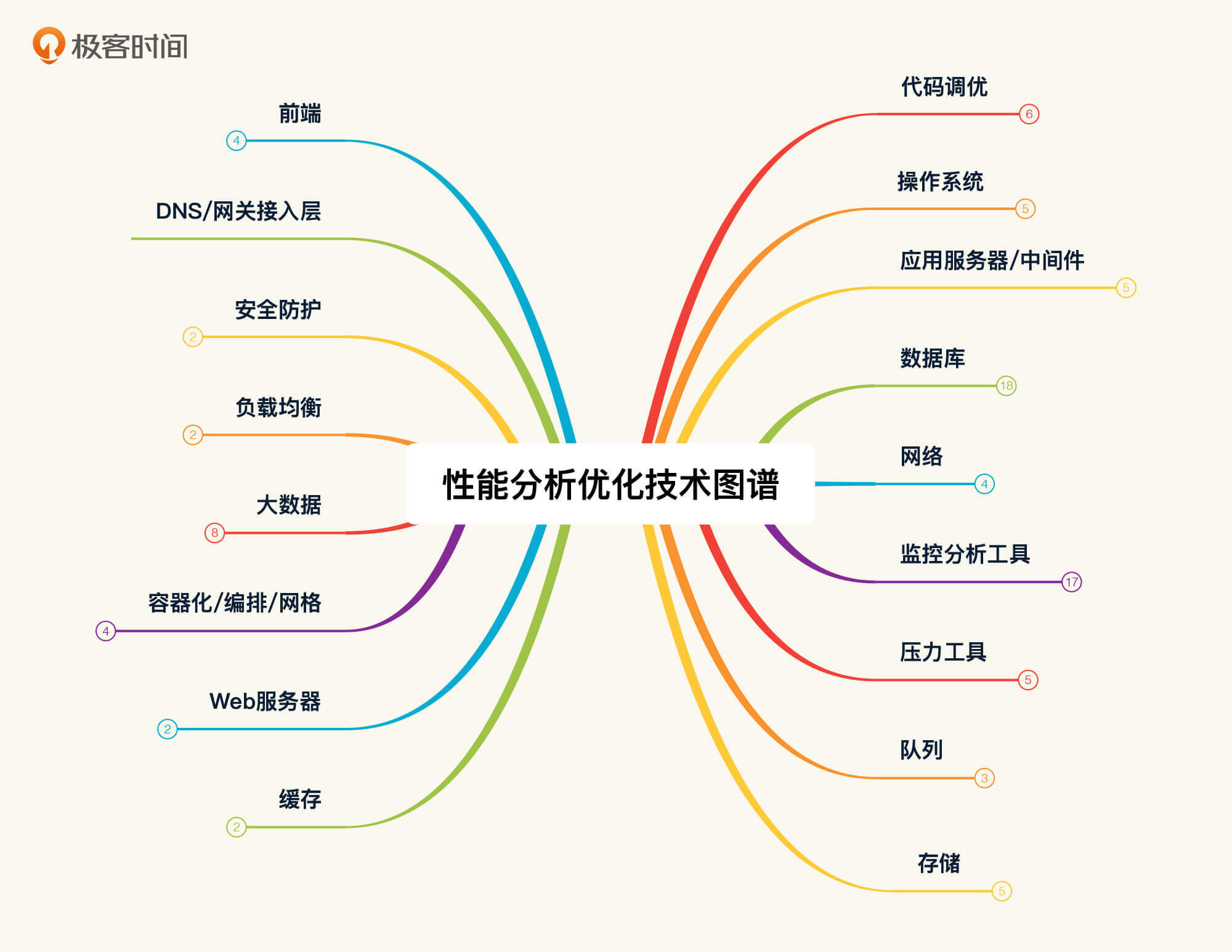 图中这些内容,都是我们做性能分析时会遇到的东西。有人可能会说,这些已经远远超出性能工程师的技能范围了。所以我要再强调一下,我讲的一直都是性能工程。在整个项目的性能分析中,我并不限定技术的范围,只要是用得上,我们都需要拿出来分析。