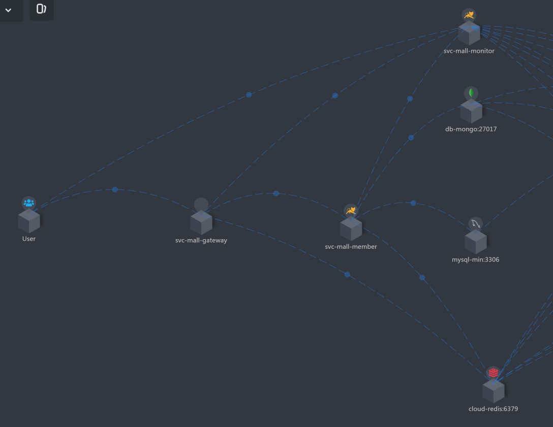 从链路监控工具中,我们拉出架构图来,这样简单直接,又不用再画图了,真的是懒人必知技能。