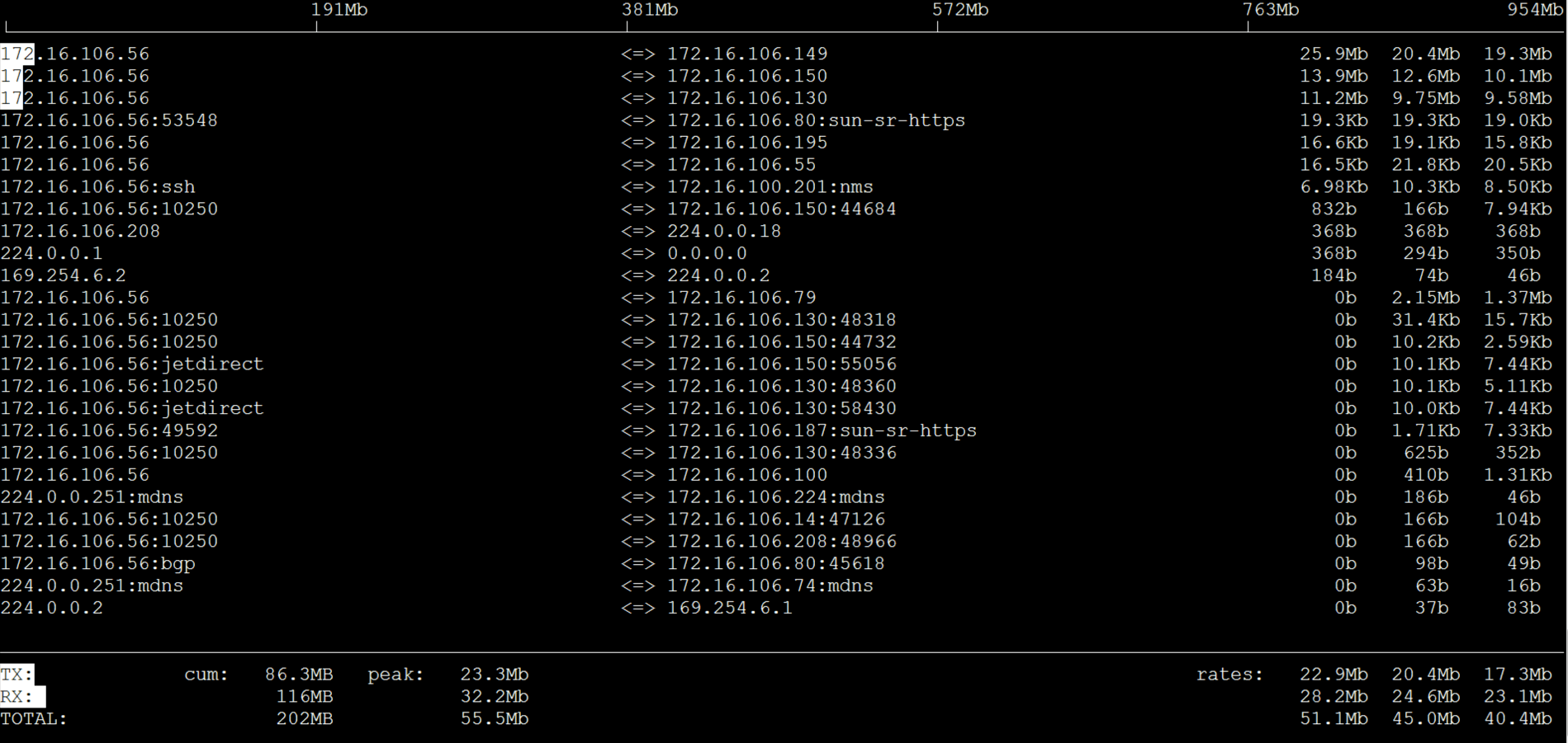 从上图来看,网络中断已经均衡了,没有单队列网卡的问题。我们再看一下网络带宽。