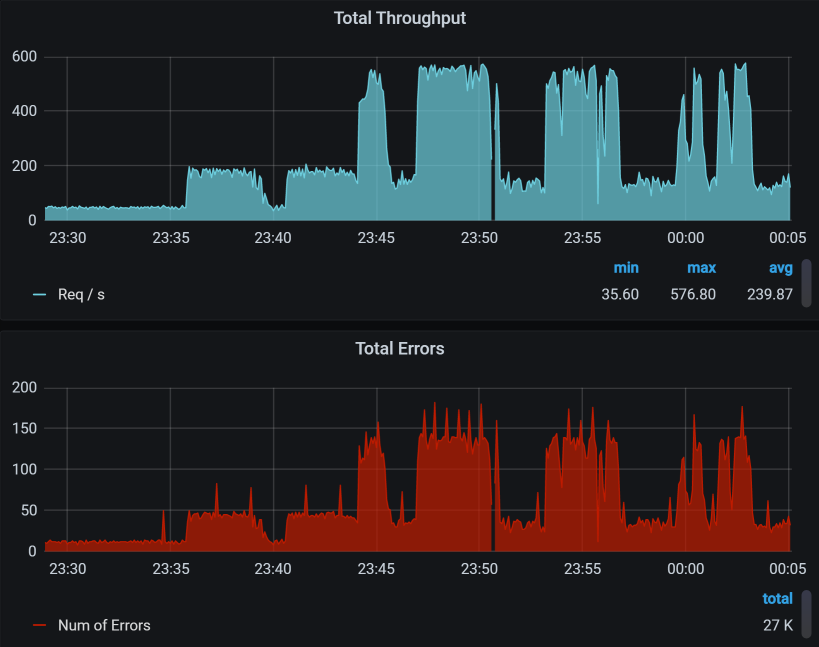 # Overall: 36.60k total, 7 unique, 89.06 QPS, 17.17x concurrency _________