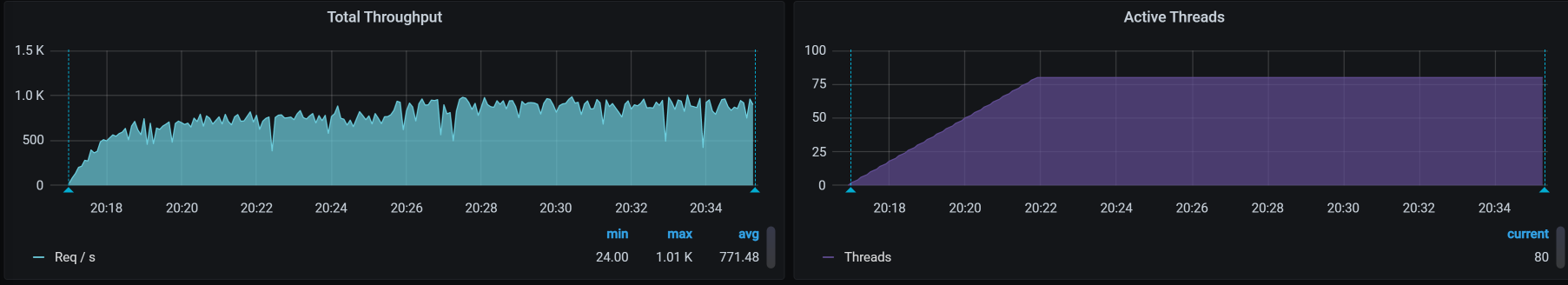 通过回归测试,我们看到TPS有一点增加,只是在图的后半段(由于在测试过程中,Gateway重启过,前面的TPS就当是预热了)增加的并不明显,大概有50多TPS的样子。不过,也算是有了效果。
