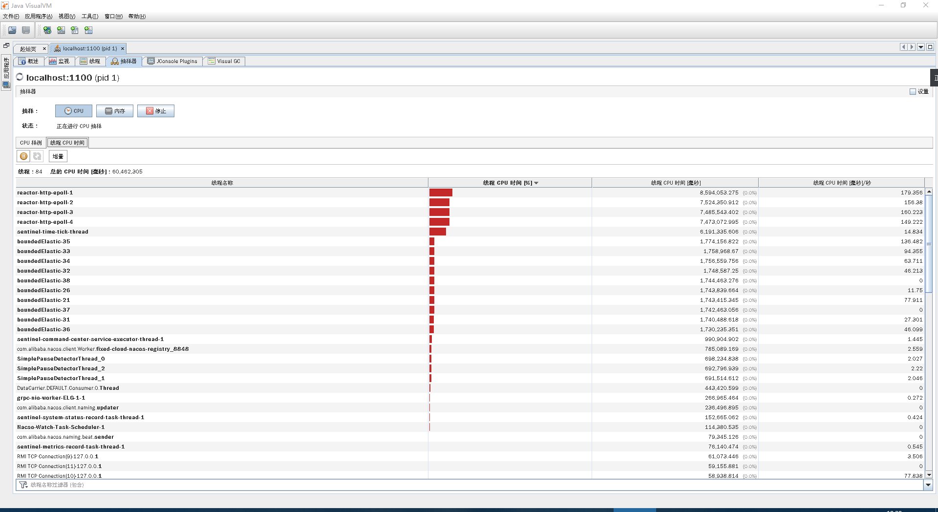 在做定向监控时,我们先来看一下线程的CPU消耗: