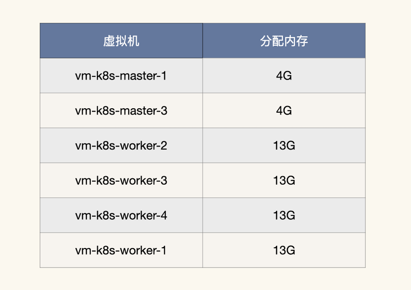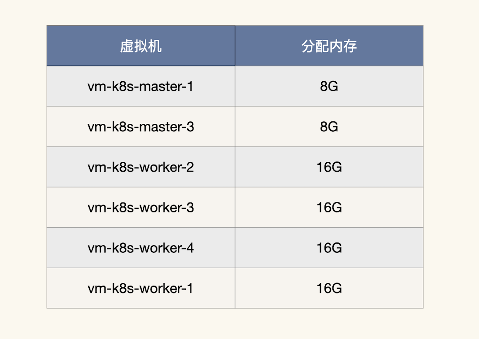 这样看来,我们就得算一下内存到底超分了多少,看看是不是因为我们配置的超分过大,导致了这个问题。我们把虚拟机的内存列出来看看: